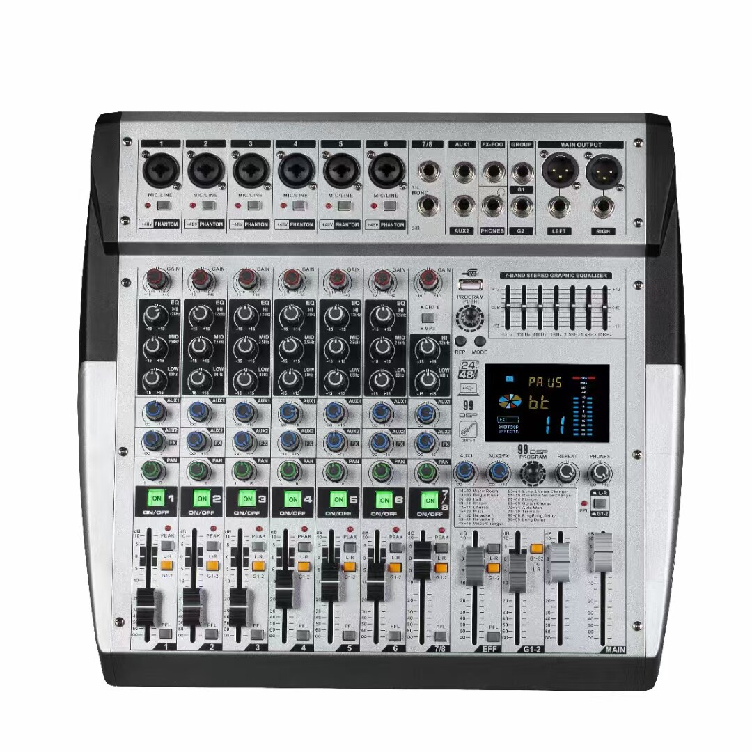 专业8路调音台舞台演出会议婚庆有2编组2aux99dsp7段均衡静音监听
