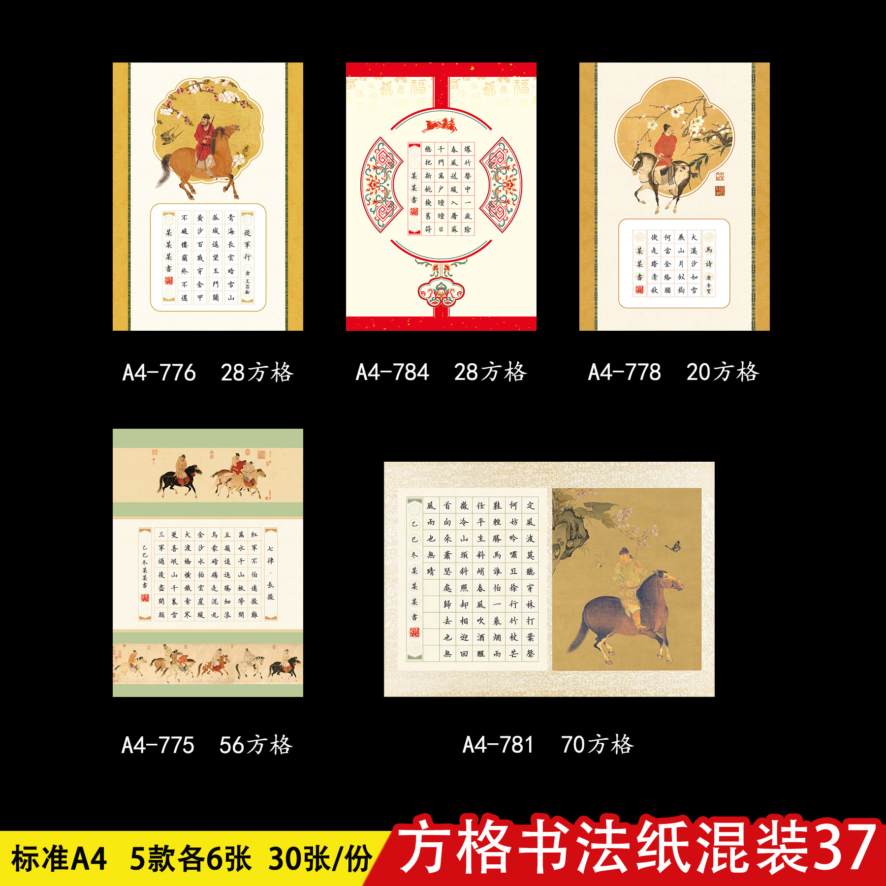 2026马年硬笔书法作品纸 a4方格书法纸 古骏款混装练字比赛专用纸