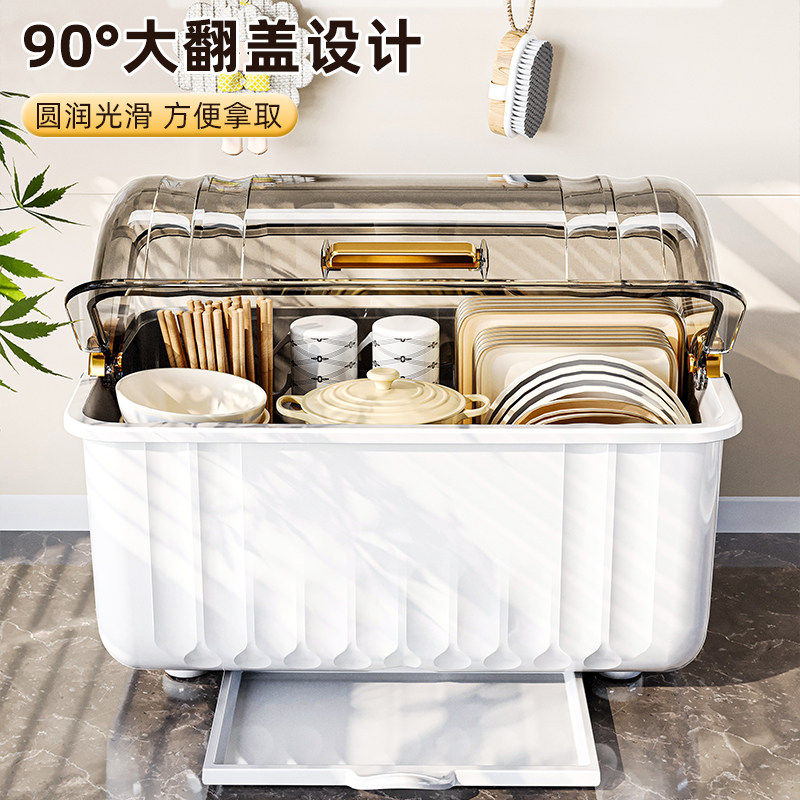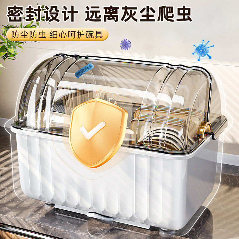 碗筷收纳盒带盖放餐具装盘子的置物架家用厨房沥水碗柜塑料储物箱