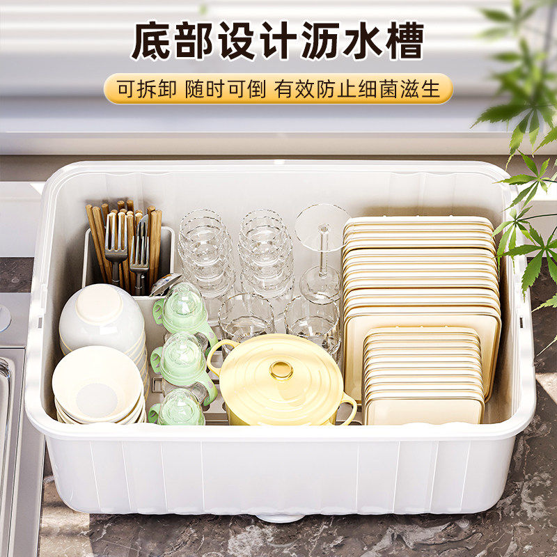 厨房置物架装碗筷收纳盒碗碟沥水架家用放碗箱碗盘收纳架台面碗柜