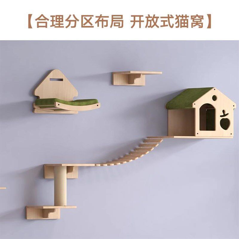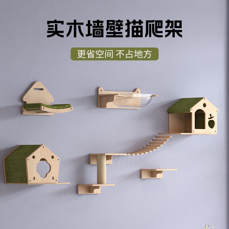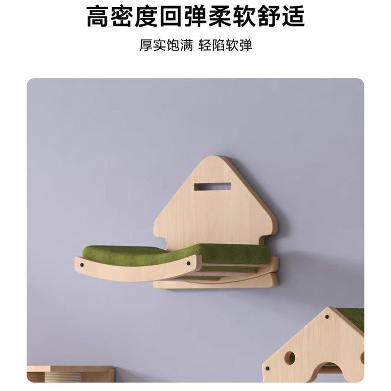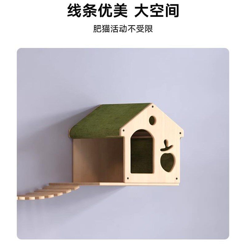 实木松木板猫爬架猫窝猫树一体墙壁式免打孔不占地方夏季猫咪用品