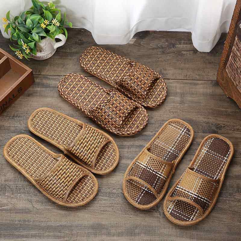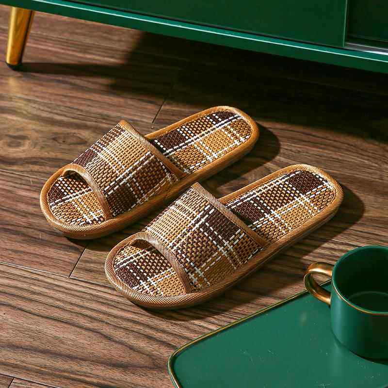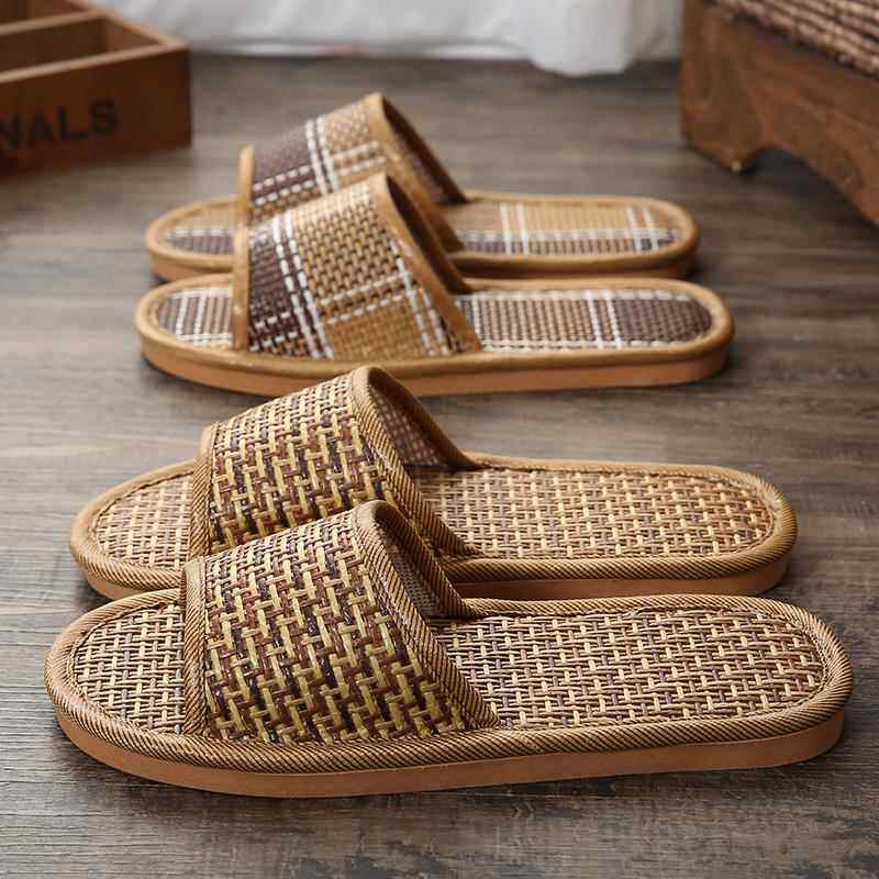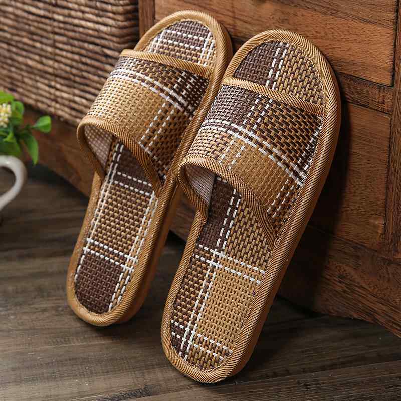 家用防臭凉拖鞋居家夏季草编竹子室内家居地板软底防滑男士夏天女