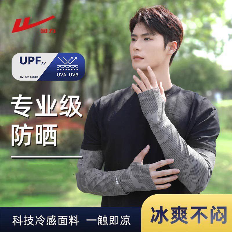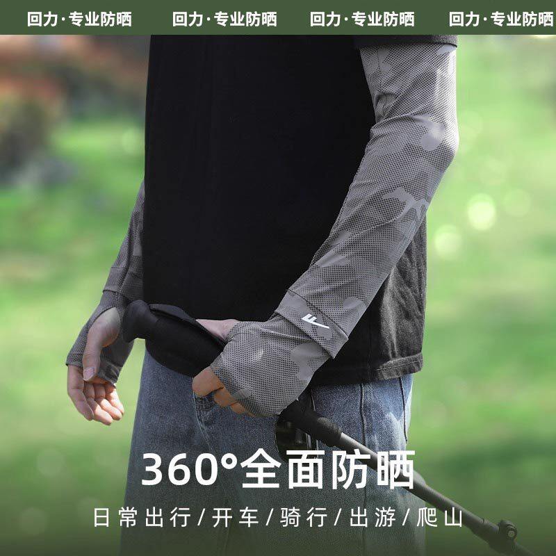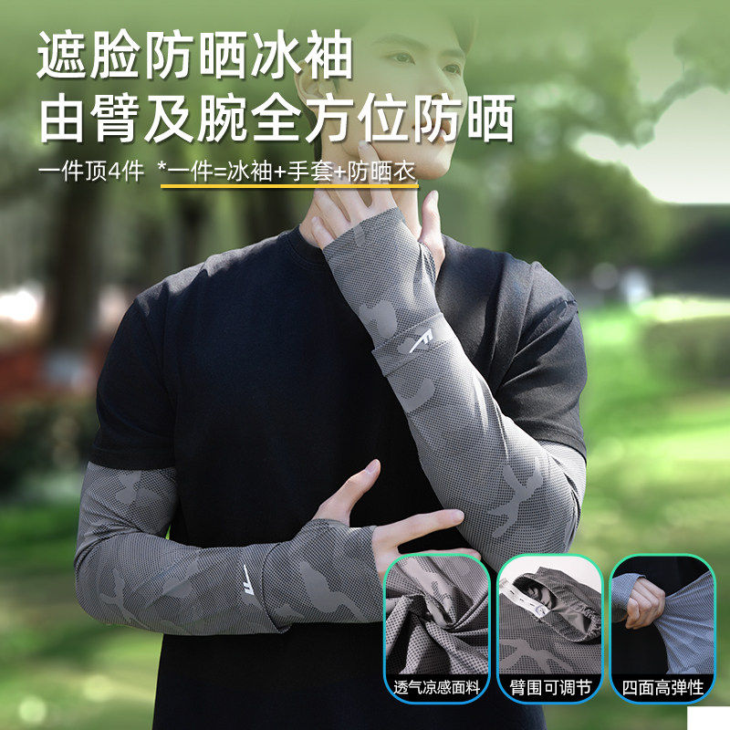 回力防晒袖套夏季男士骑行防紫外线冰袖钓鱼宽松护臂手套面罩迷彩