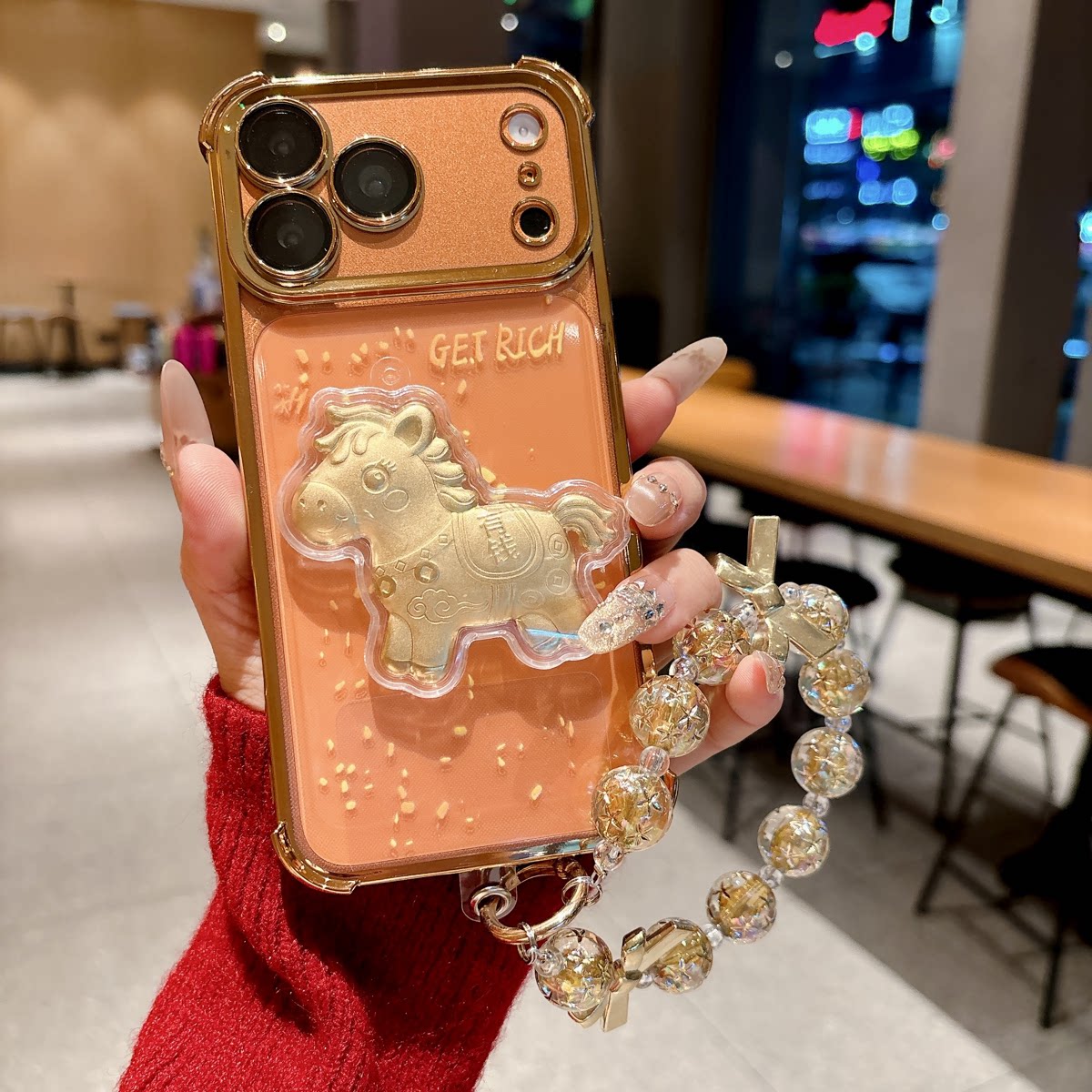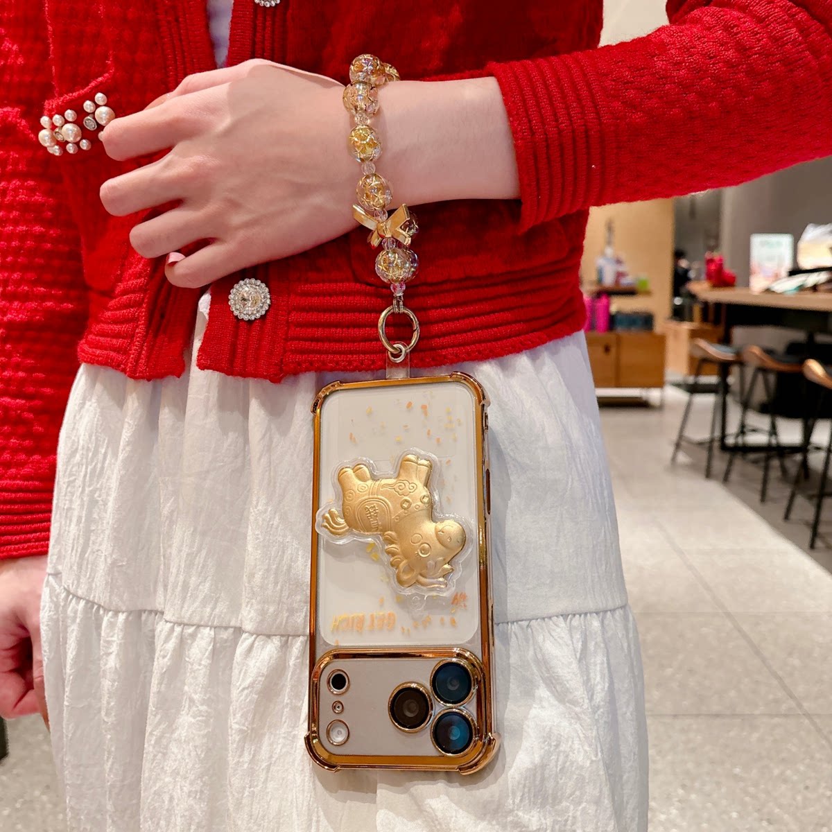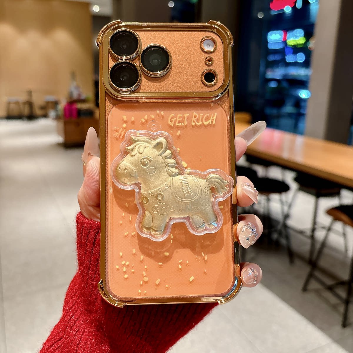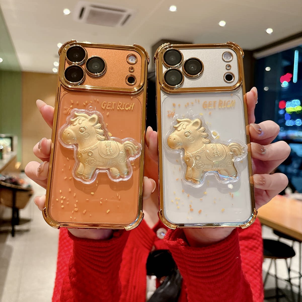 马上有钱立体适用苹果16/17手机壳iPhone15电镀四角防摔14Pro新年