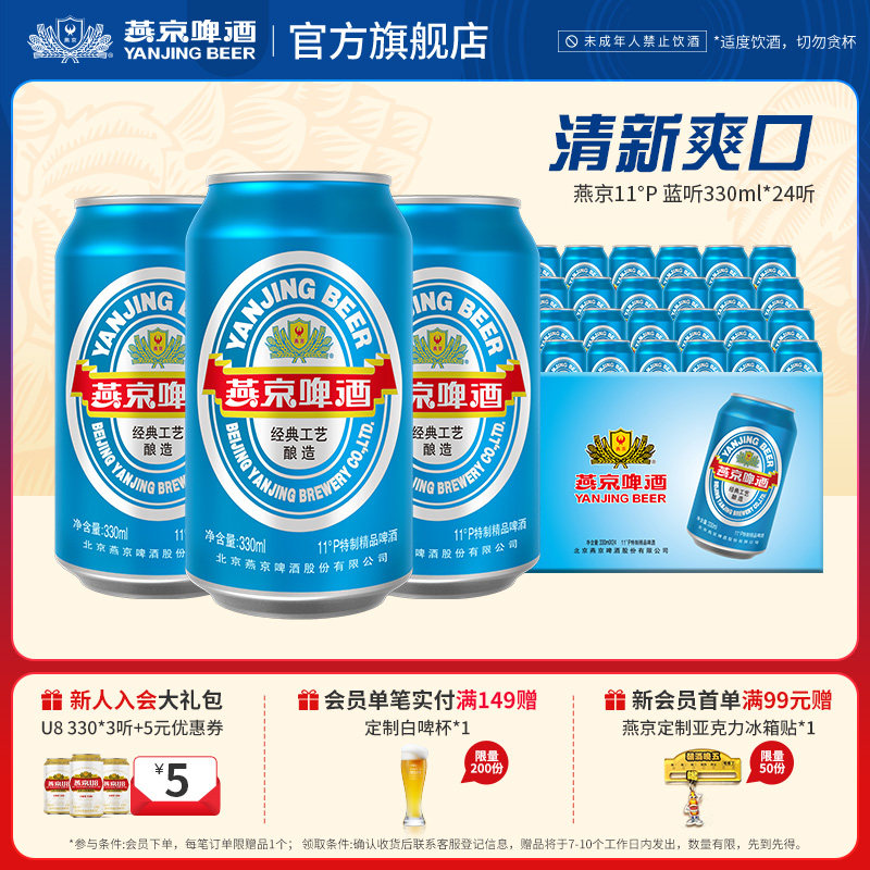 燕京啤酒 11度蓝听清爽黄啤酒330ml*24听啤酒官方直营整箱装包邮