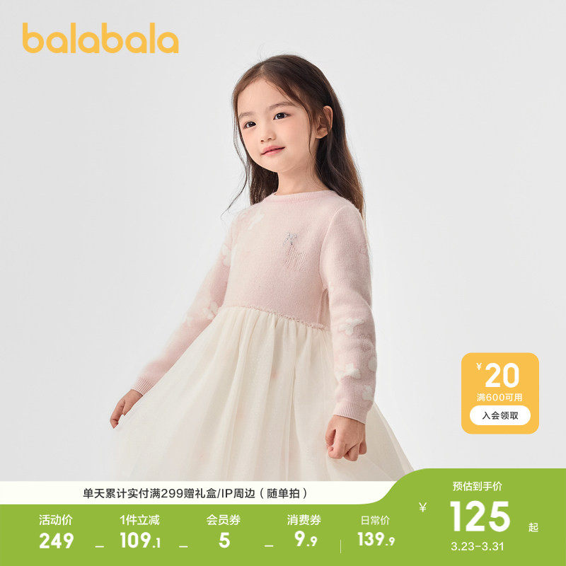 巴拉巴拉童装儿童连衣裙女童秋冬装网纱公主裙子针织小童宝宝洋气