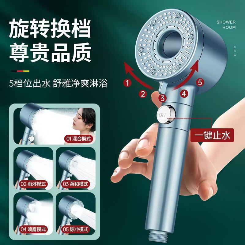 涡轮增压花洒喷头超强加压家用浴霸洗澡淋浴头高压套装软管开关