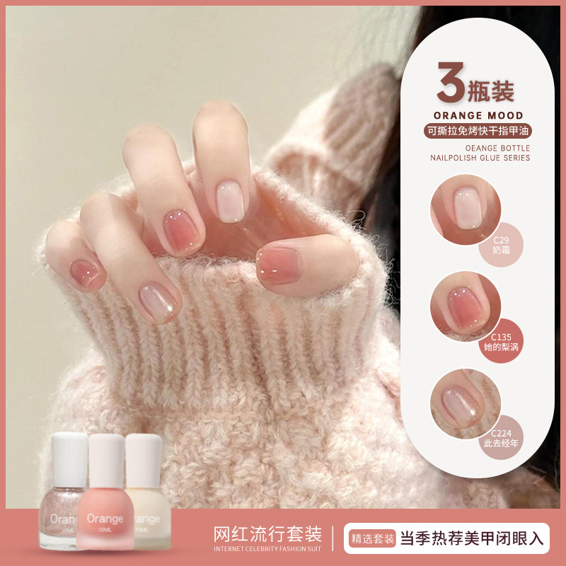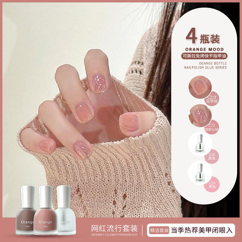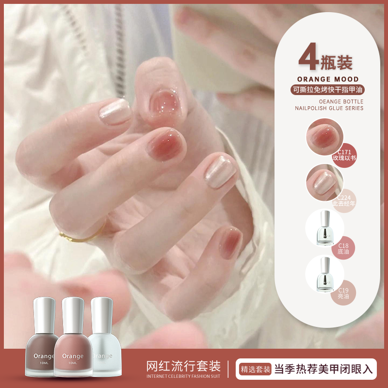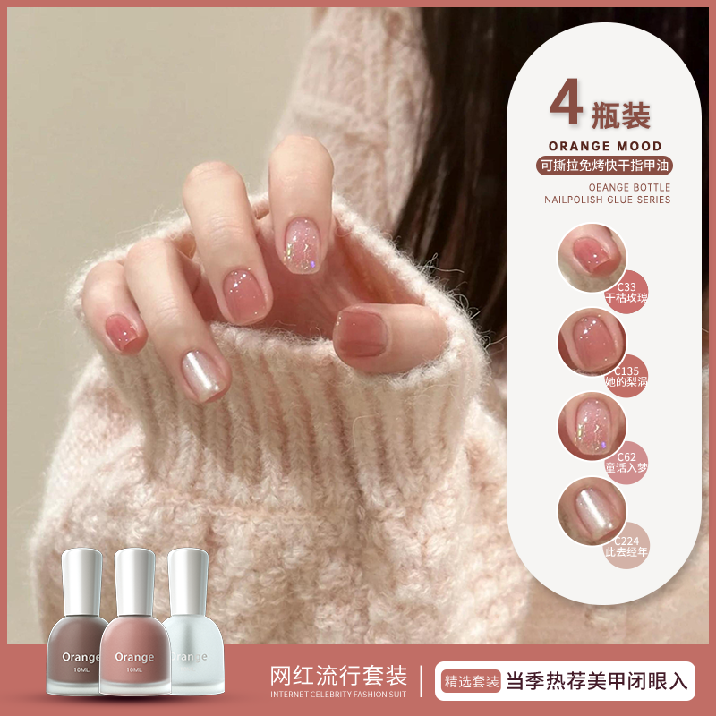 Orange裸色指甲油套装夏日免烤速干2025年新款网红流行色可撕拉女