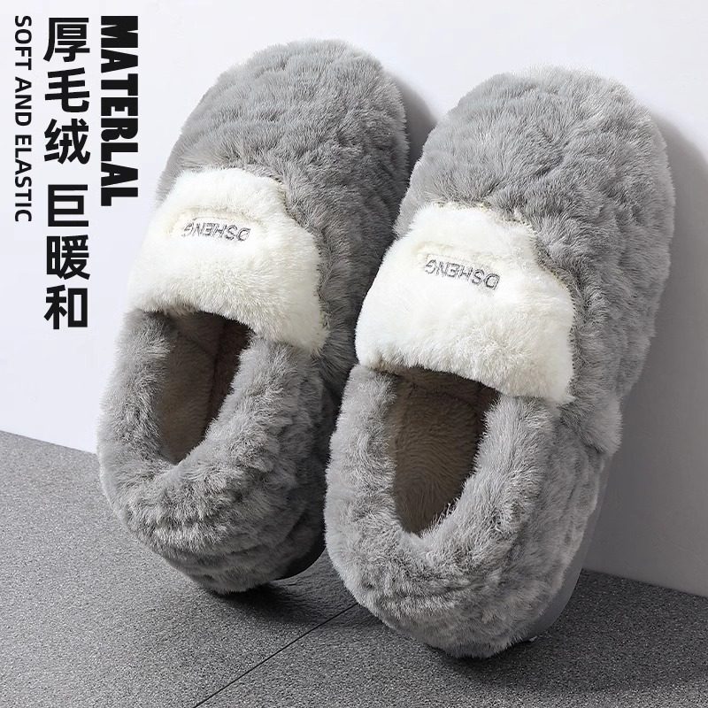 男士棉拖鞋冬季外穿包跟室内家居厚底保暖毛绒情侣家用棉鞋男冬款