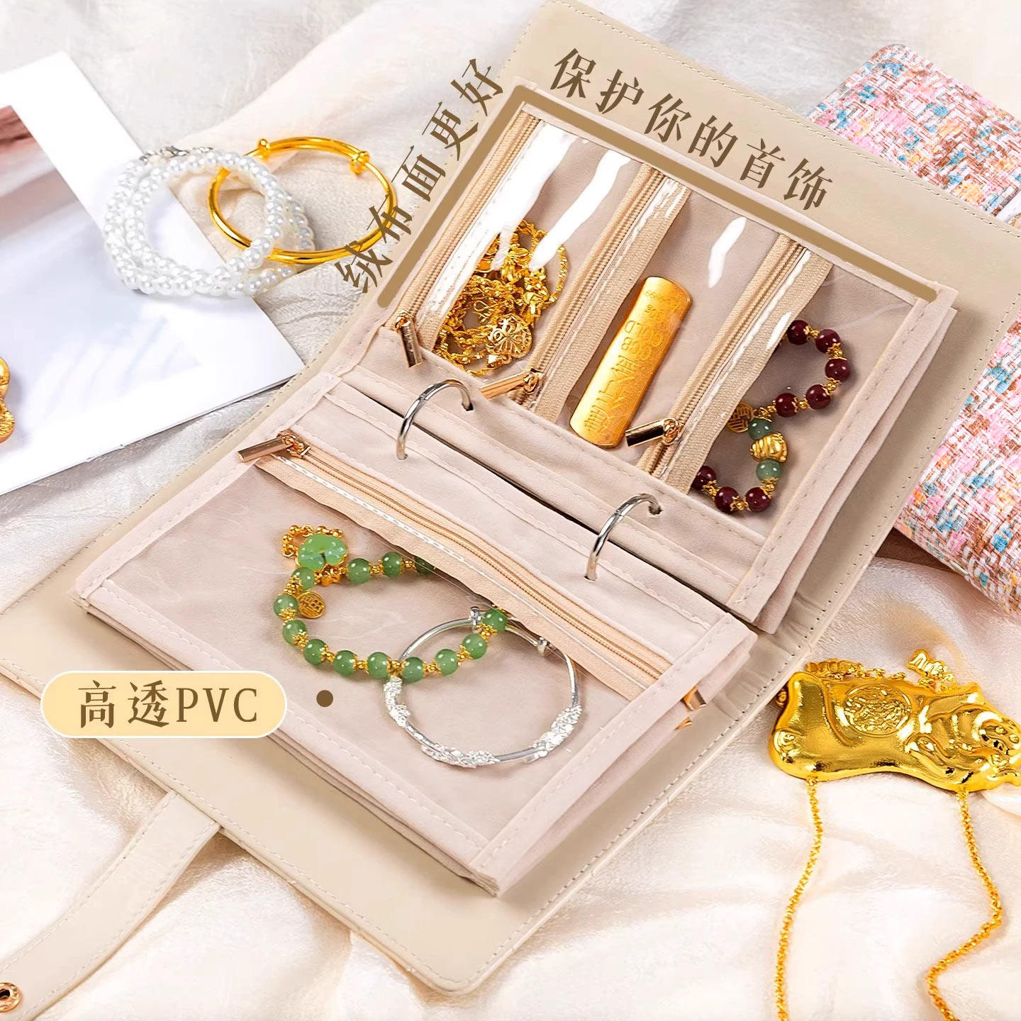 小香风首饰收纳包饰品专用黄金手饰收纳册书2025新款旅行便携收纳本耳环项链手链手镯戒指包密封袋珠宝便携式