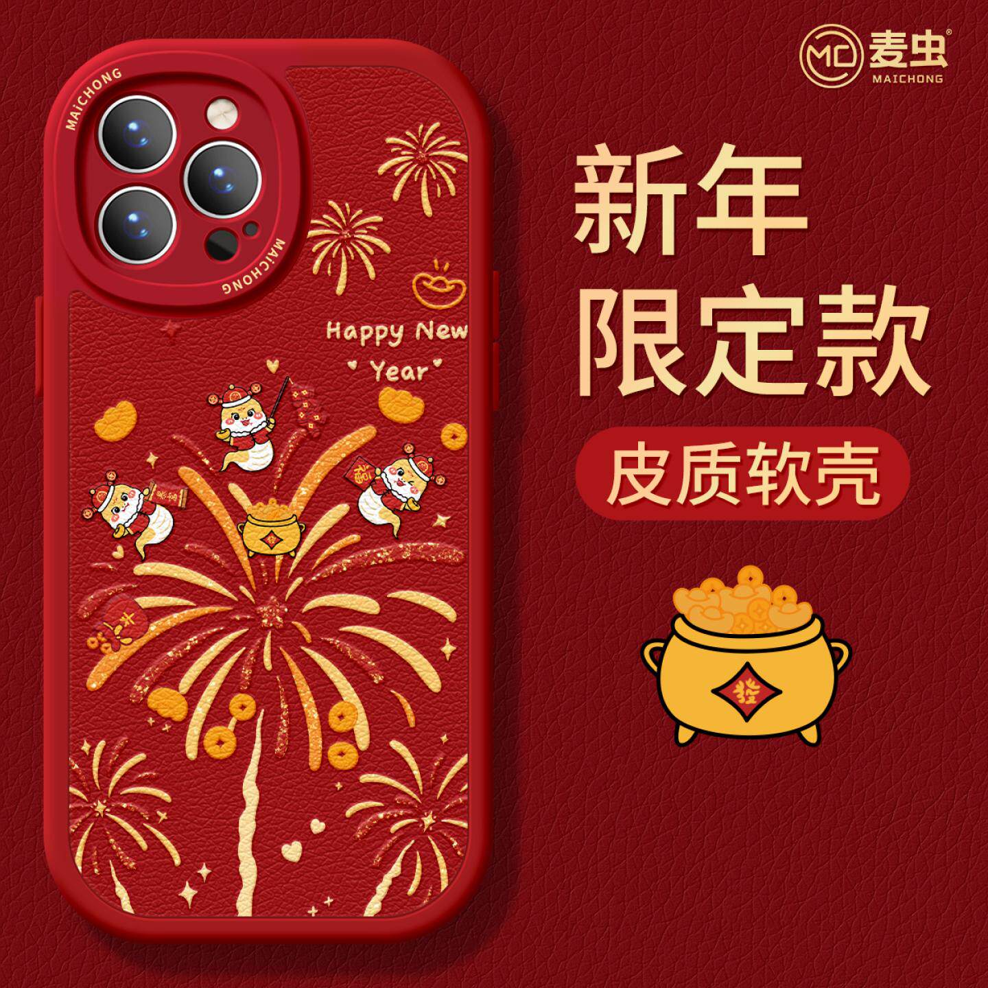 适用苹果17手机壳女款iphone16pro保护套13mini全包14防摔11/12/xs软外7plus硅胶8小羊皮6s蛇年15烟花max新年