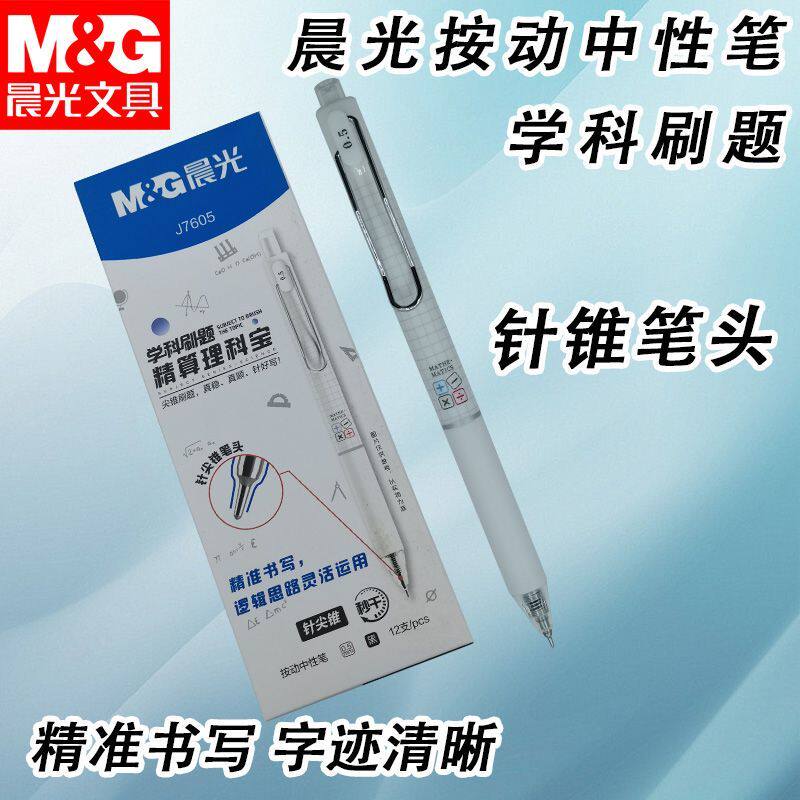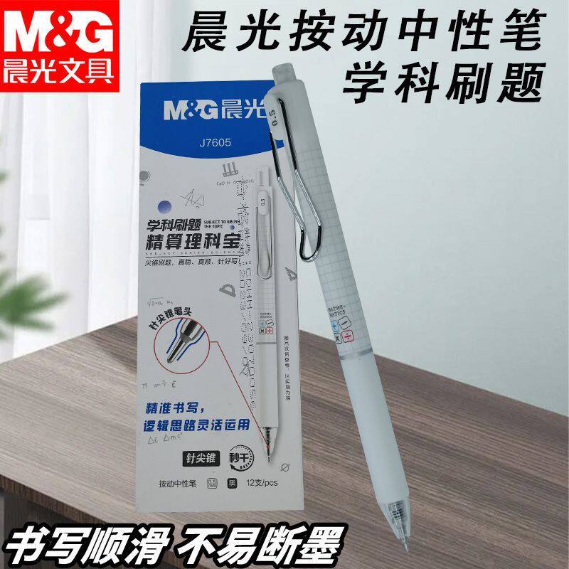 晨光按动中性笔学科刷题AGPJ7605速干黑0.5学生学习考试书写用笔