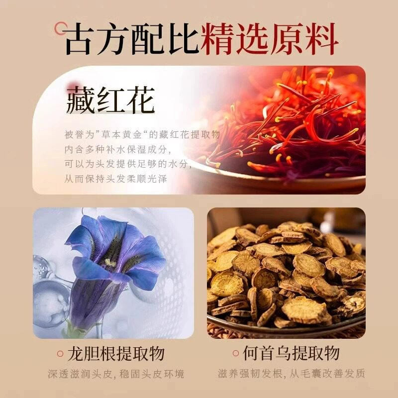 藏红花首乌养发精华液白变黑发草本植萃护发正品官方养护柔顺秀发