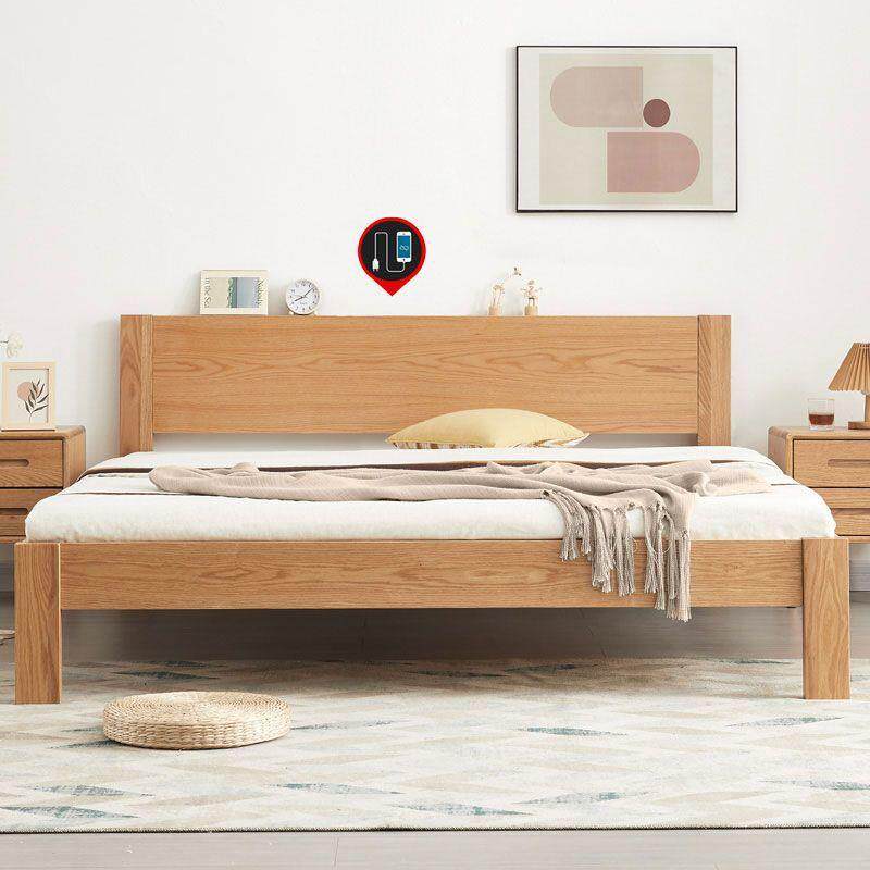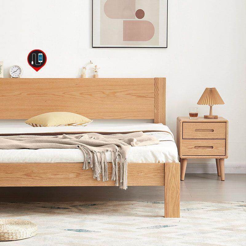 北欧风公寓实木床现代简约带夜灯卧室双人木床宾馆民宿酒店家具床