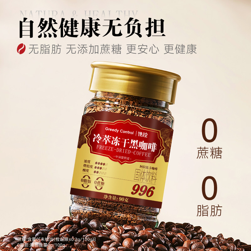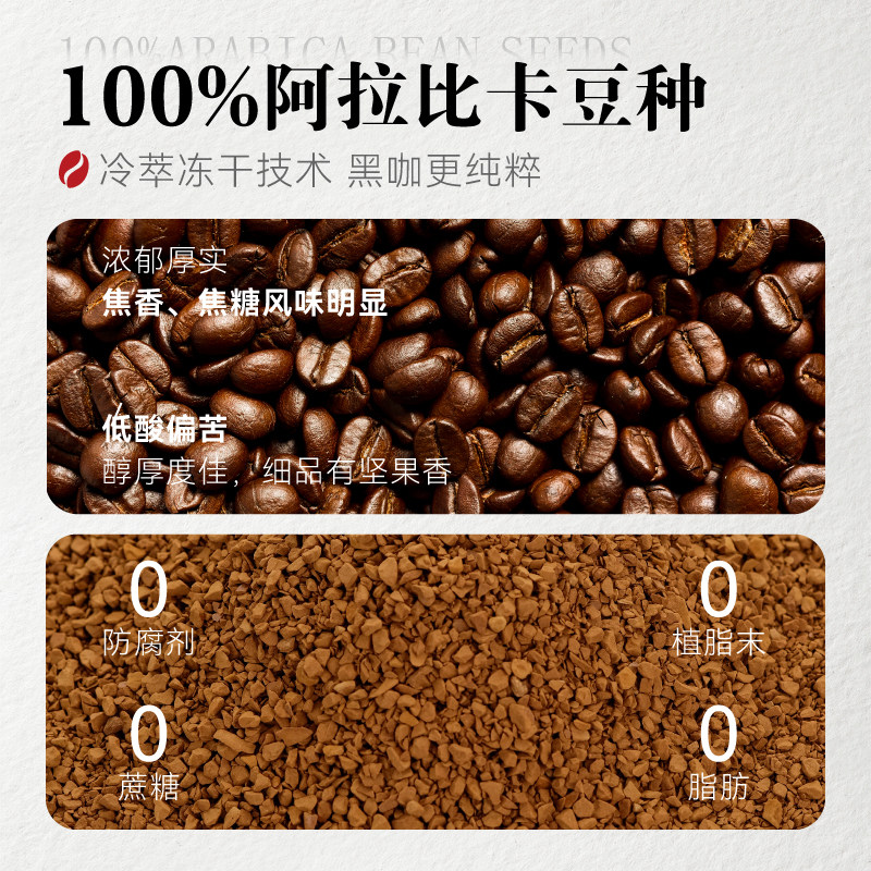 冷萃冻干黑咖啡阿拉比卡速溶纯黑美式中深度无蔗糖0脂拿铁瓶装