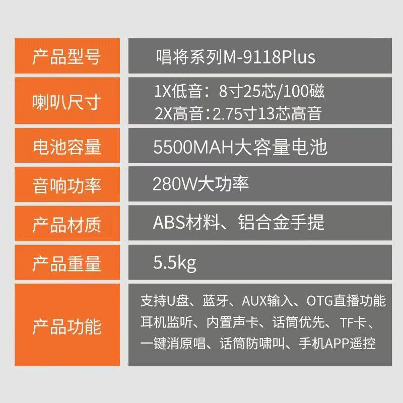 万利达9118plus户外广场舞音响家用直播声卡手提K歌收款蓝牙音箱