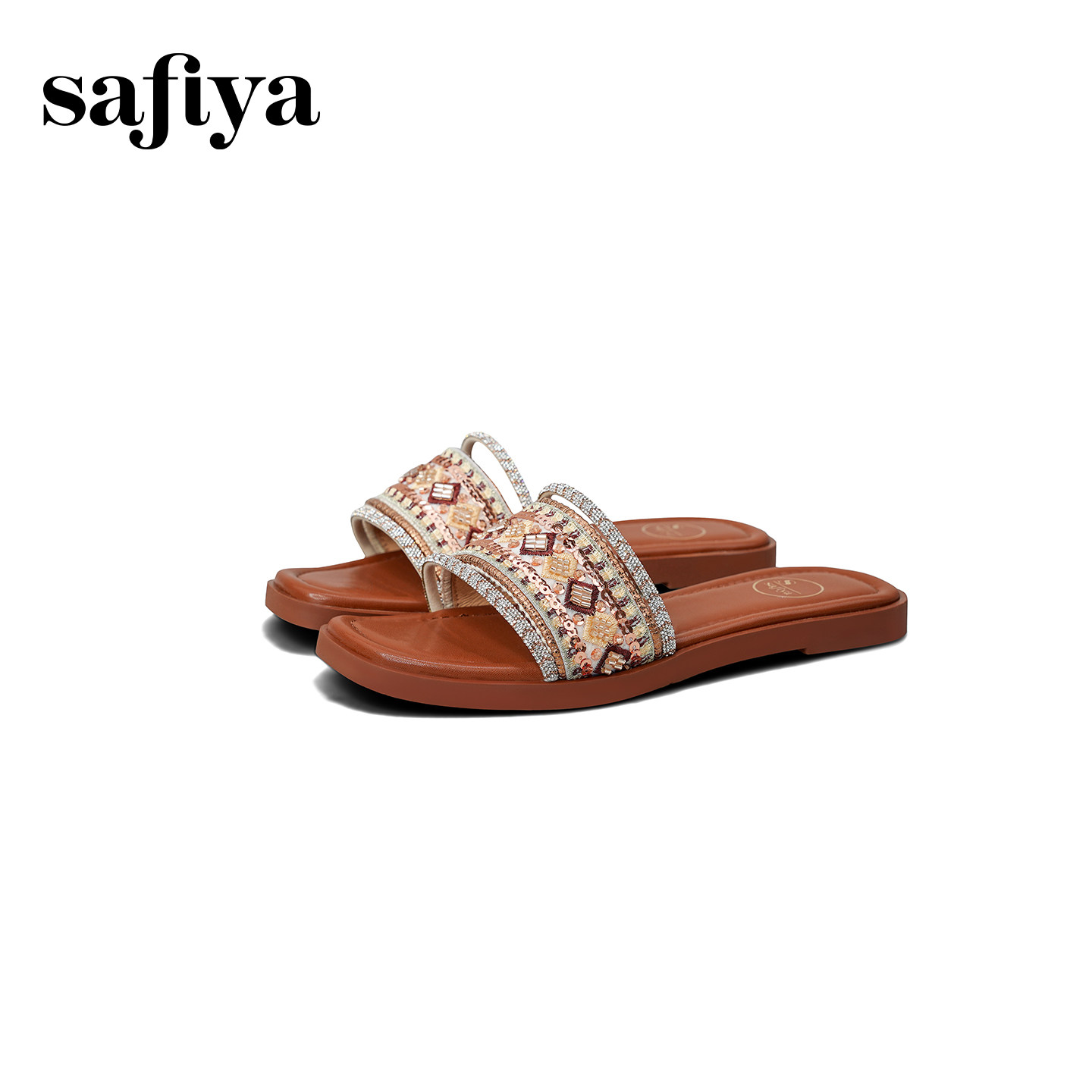 真皮踩屎感~骄屿凉拖鞋女水钻一字带2025新款夏季方头绝美高跟鞋