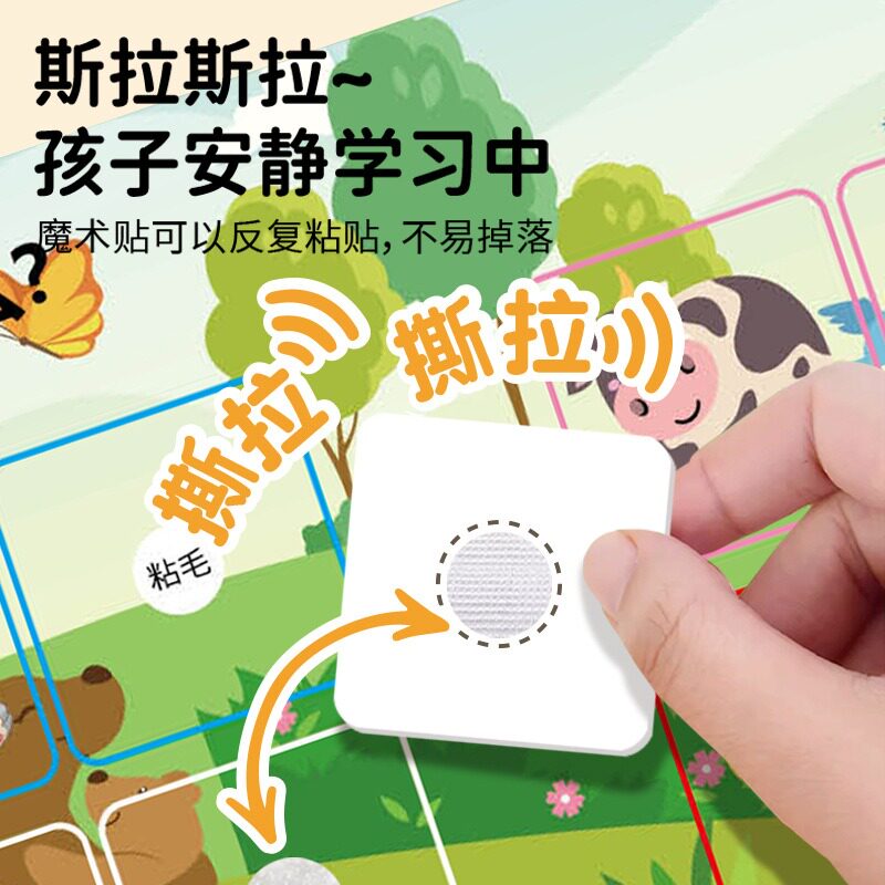 宝宝手撕书安静书撕拉书早教魔术贴婴幼儿0-3岁益智启蒙玩具动物