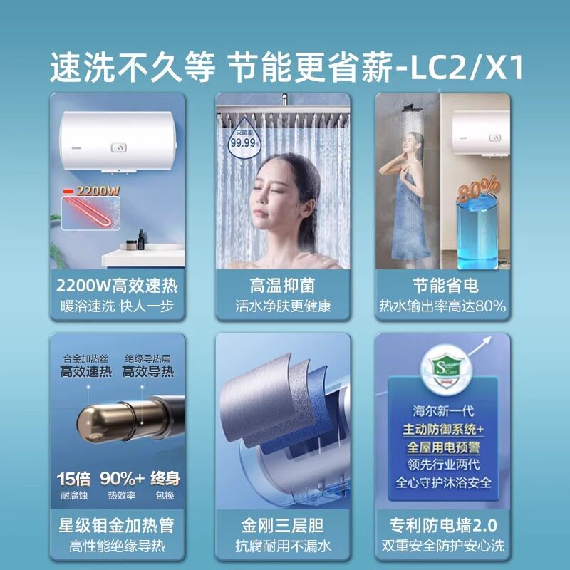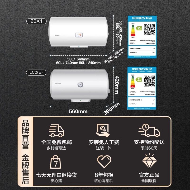 海尔出品统帅小型60升电热水器X1储水式卫生间洗澡出租房宿舍20X1