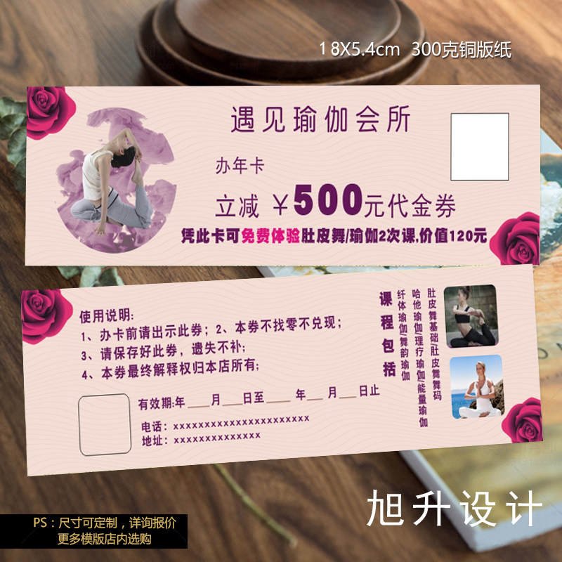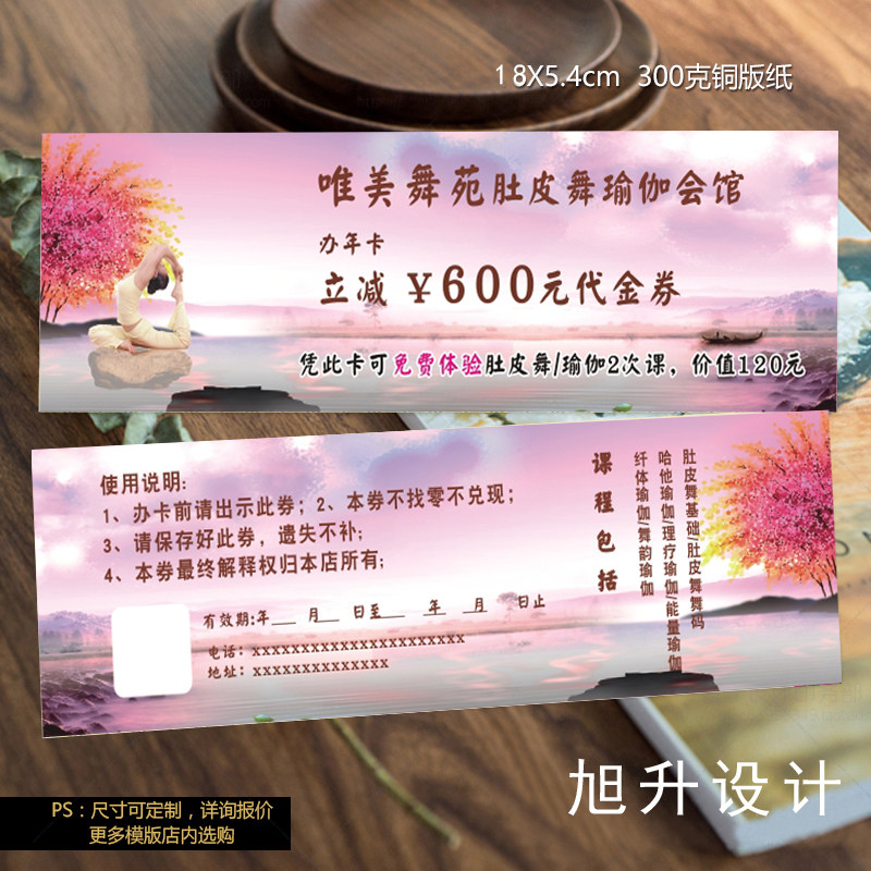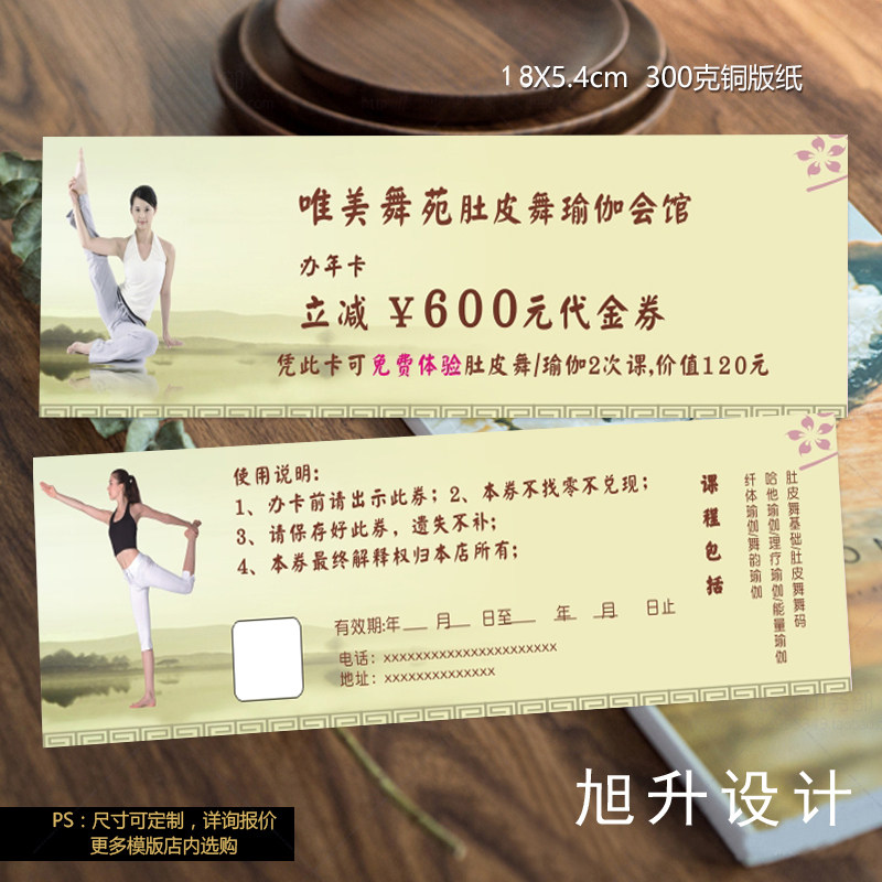 舞蹈培训班学员瑜伽馆健身房体验卡定制代金优惠券积分次数卡设计