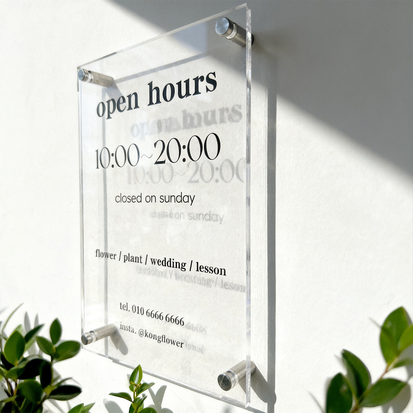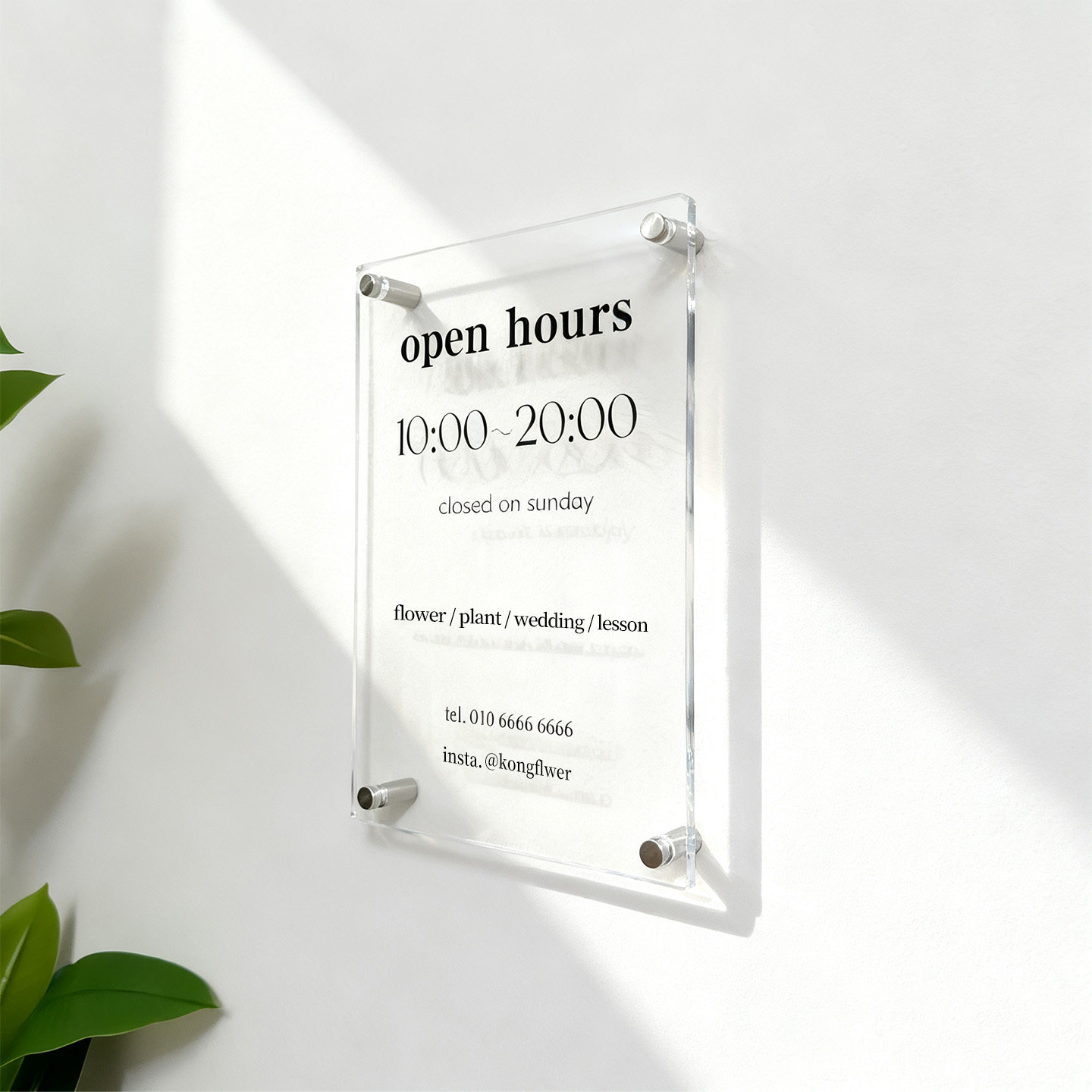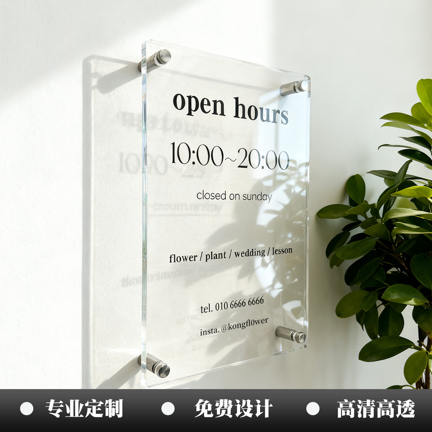 营业时间告示牌亚克力透明广告展示牌挂墙上墙店铺门口工作室标志牌美甲美睫网红风logo招牌定做定制公司门牌