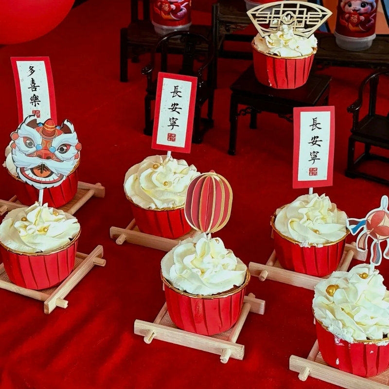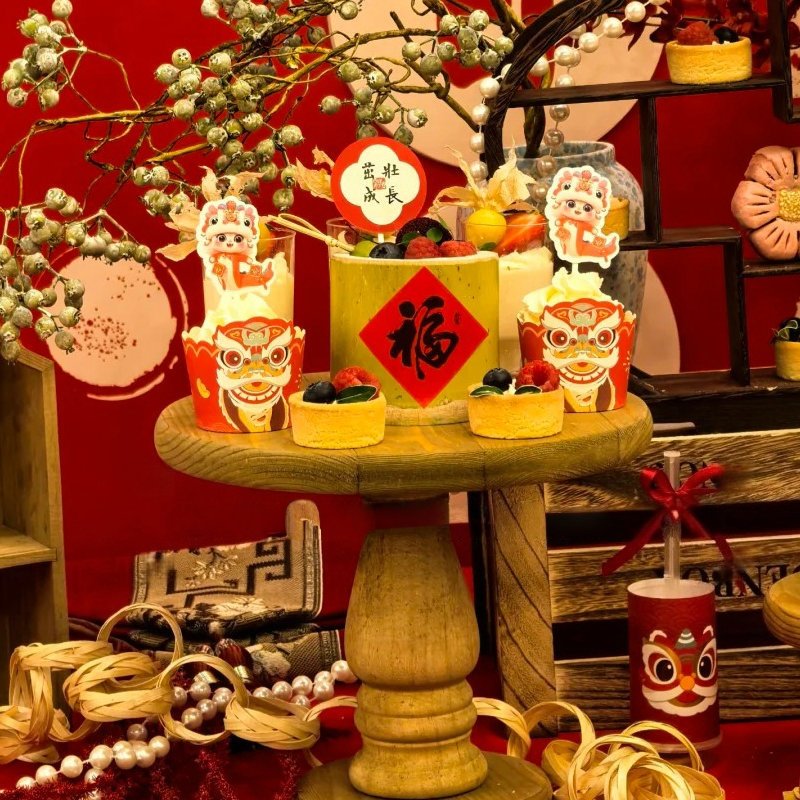 红色蛇宝宝甜品台蛋糕装饰插件牌宝宝满月百天周岁儿童推推乐贴纸
