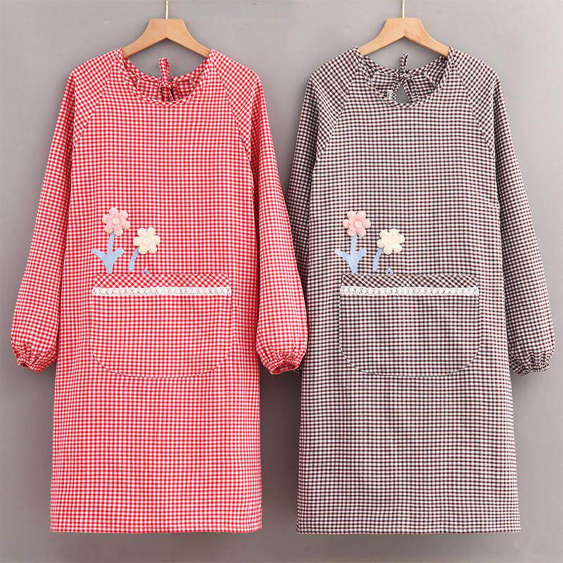加厚棉布小花长袖罩衣围裙家用厨房做饭女时尚上班防污耐脏工作服