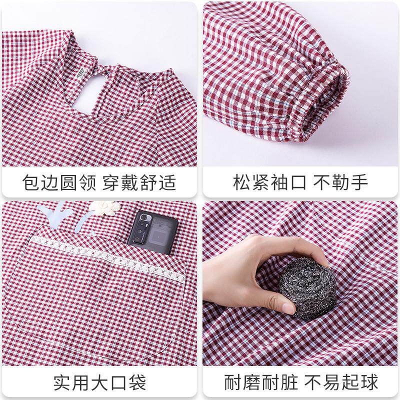 新款棉布耐磨围裙长袖厨房家用防污罩衣透气围腰做饭上班工作服女