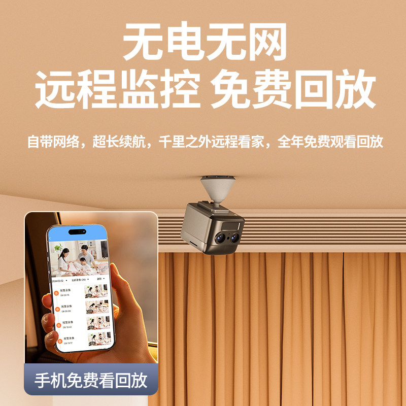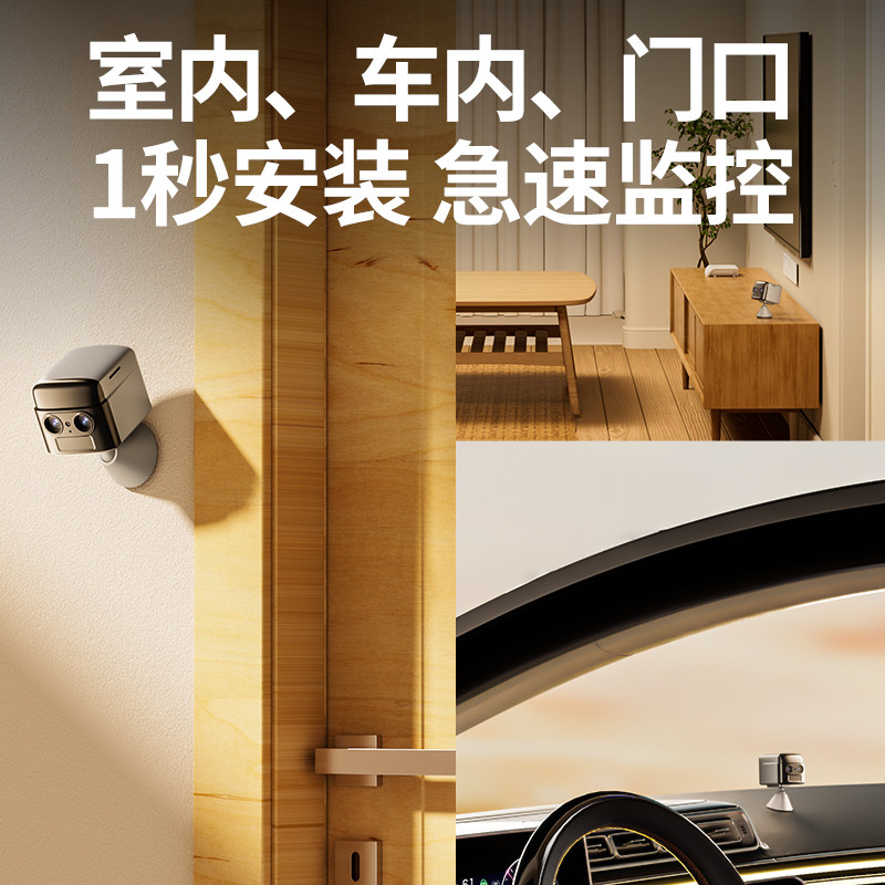 摄像头车载无线免插电手机远程家用夜视高清夜视4g车内停车监控AI行车记录仪无线监控摄头充电款听声器录音