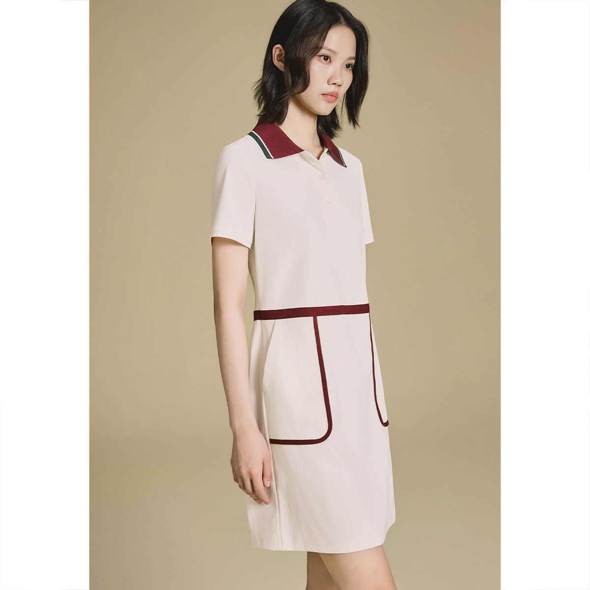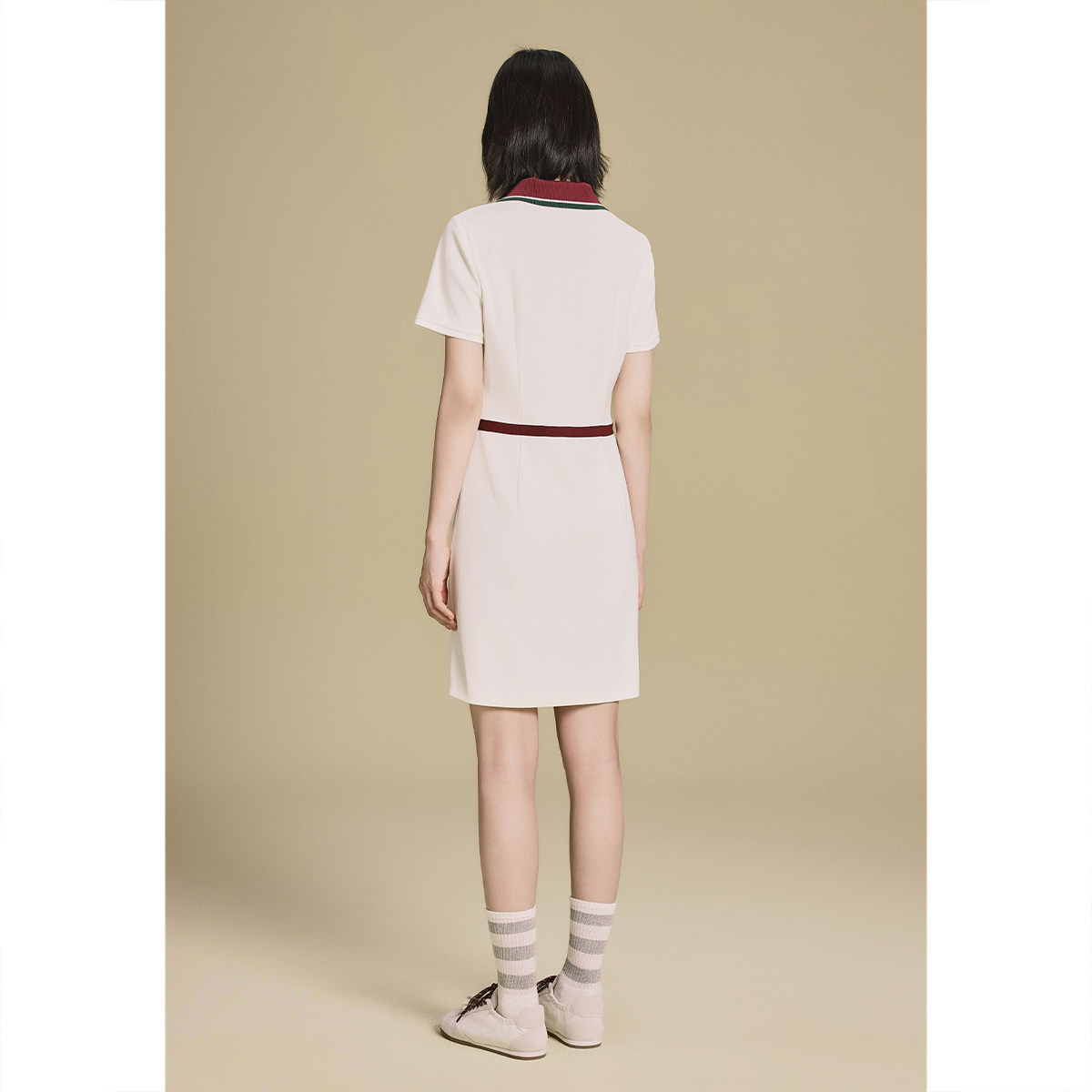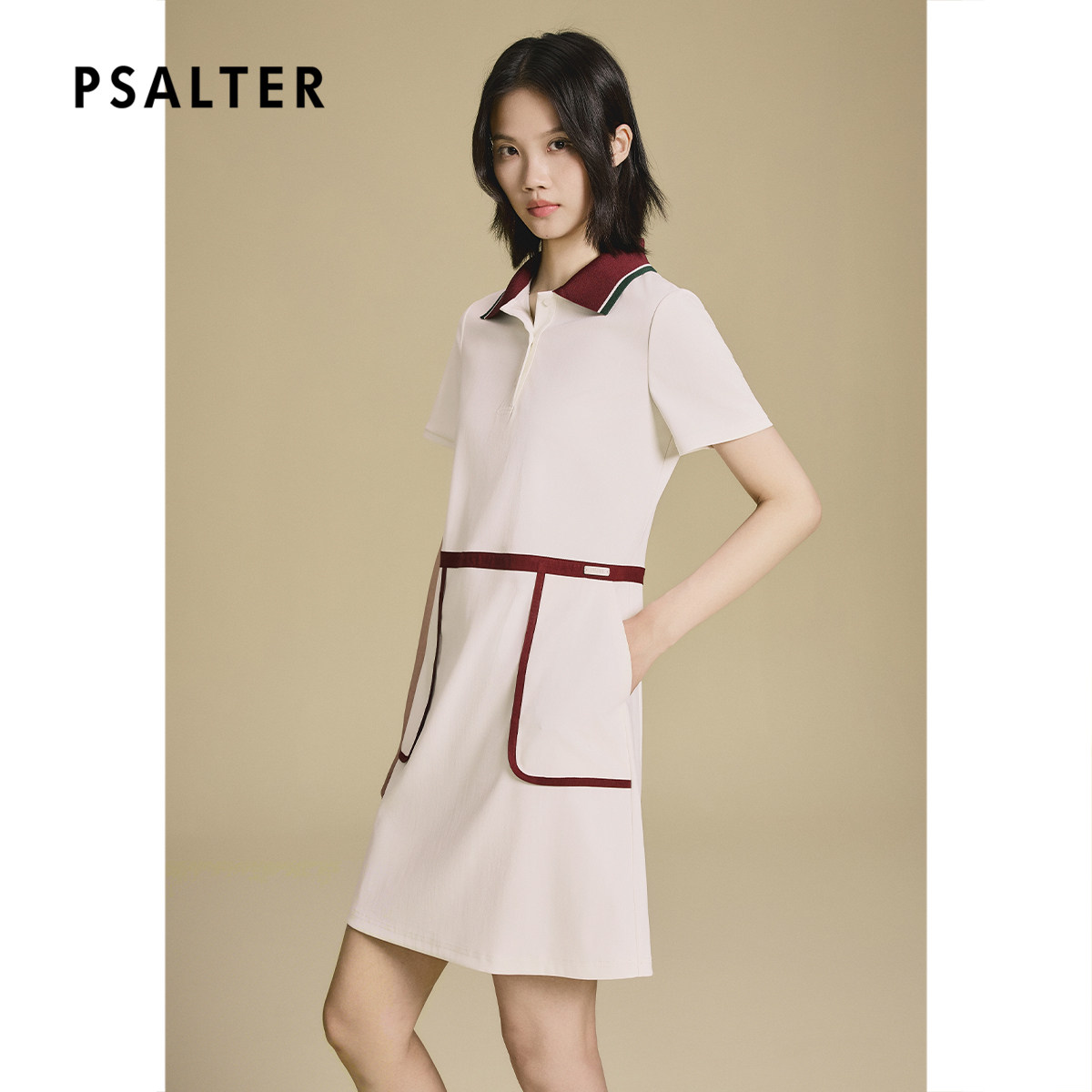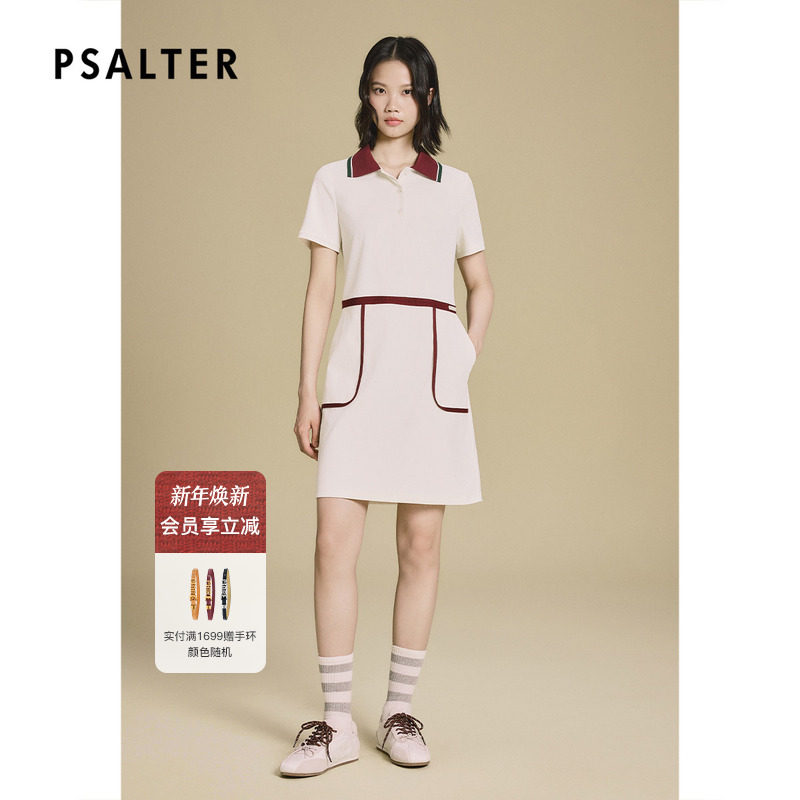 PSALTER诗篇复古运动风三醋酯H型撞色连衣裙2025秋季新款