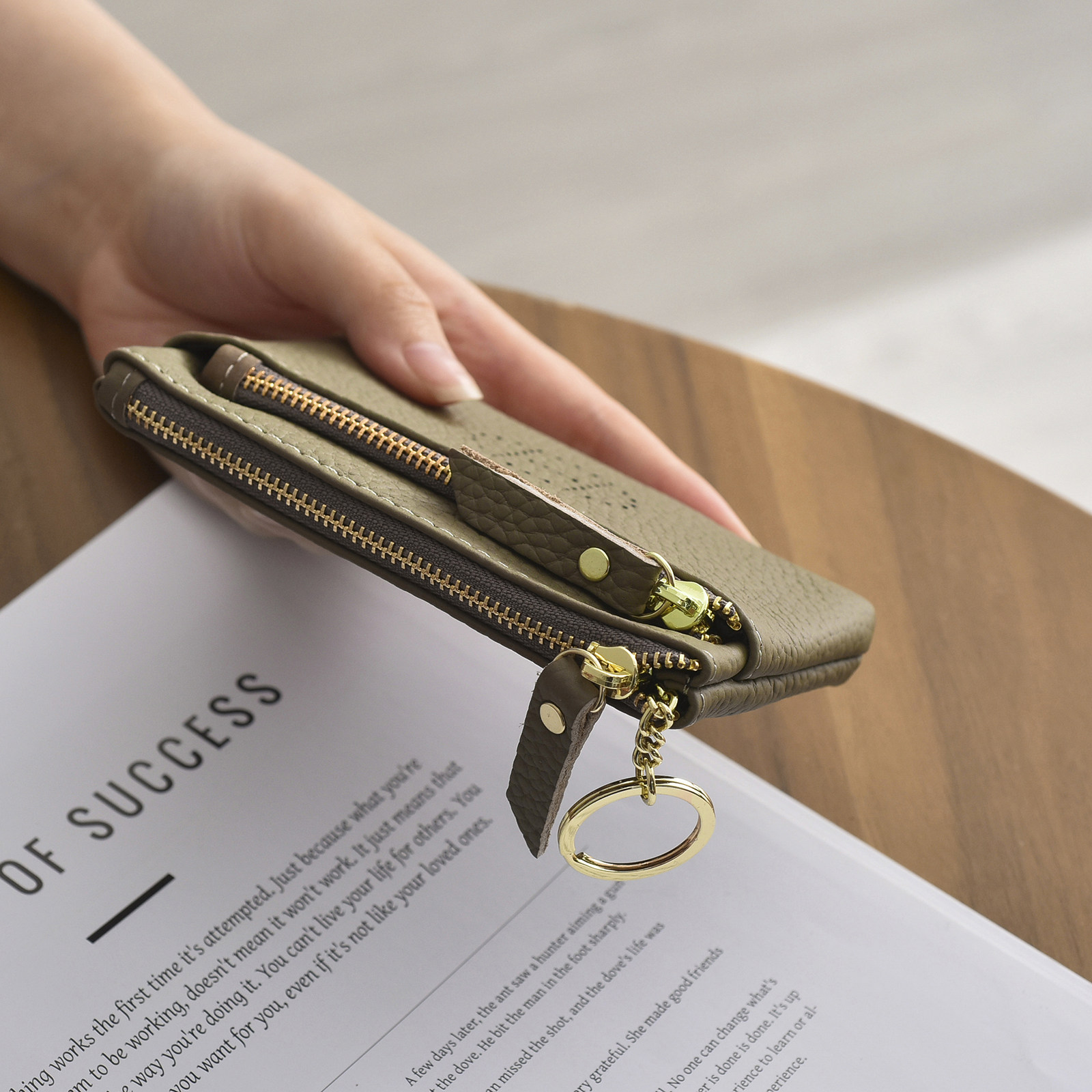 稻草人卡包女士新款证件女式牛皮小巧真皮拉链钱夹小众银行卡钱包