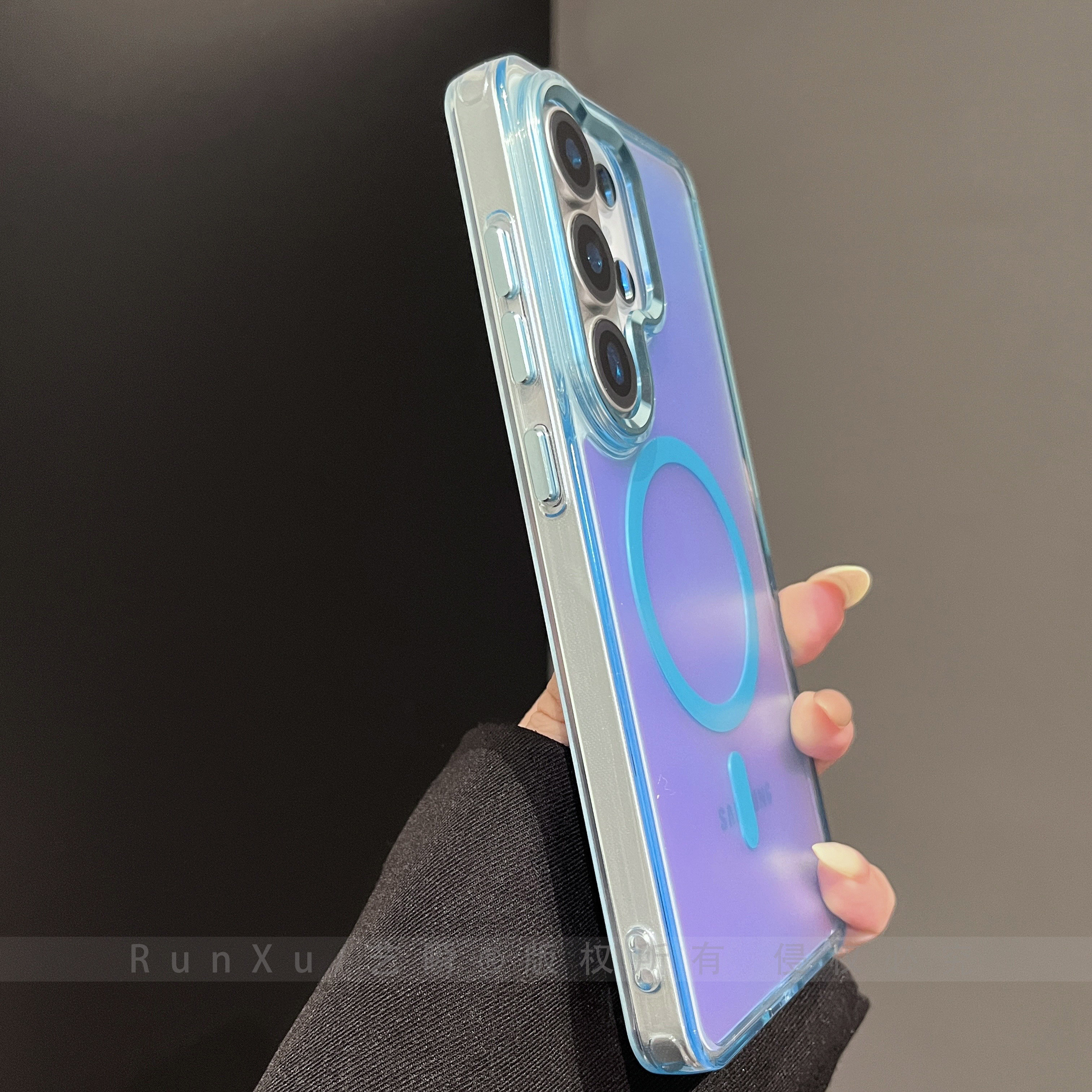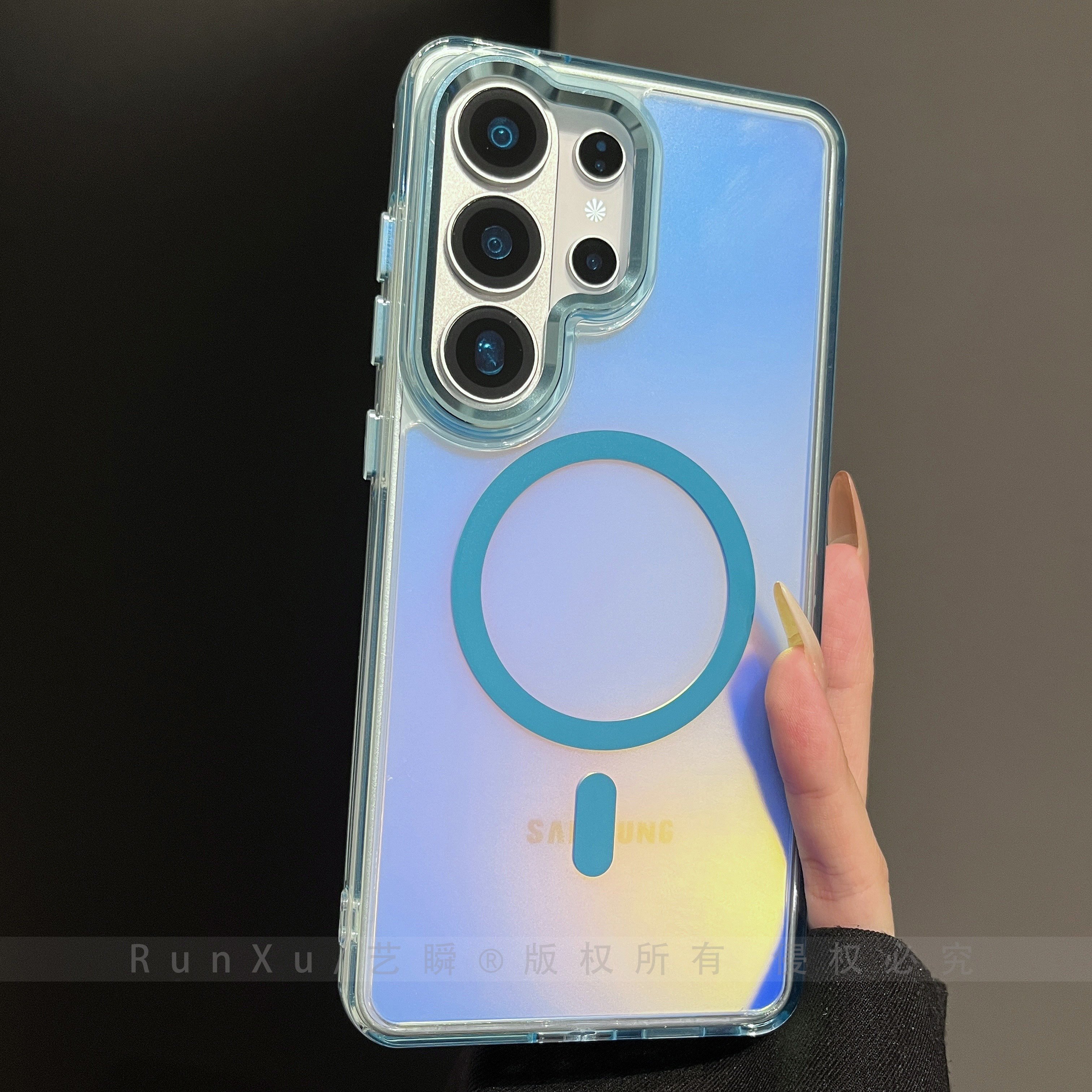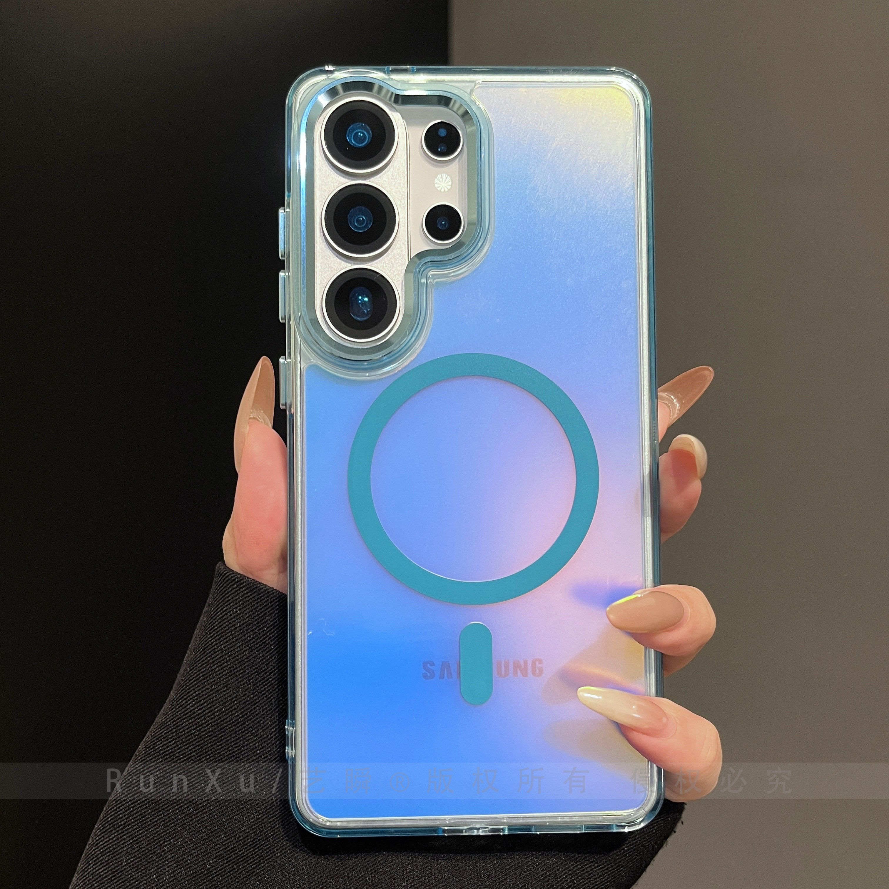 小众个性治愈霓虹炫彩天蓝色适用三星S26Ultra磁吸手机壳S25plus镭射渐变S24好看Ultra情侣S26全包防摔保护套