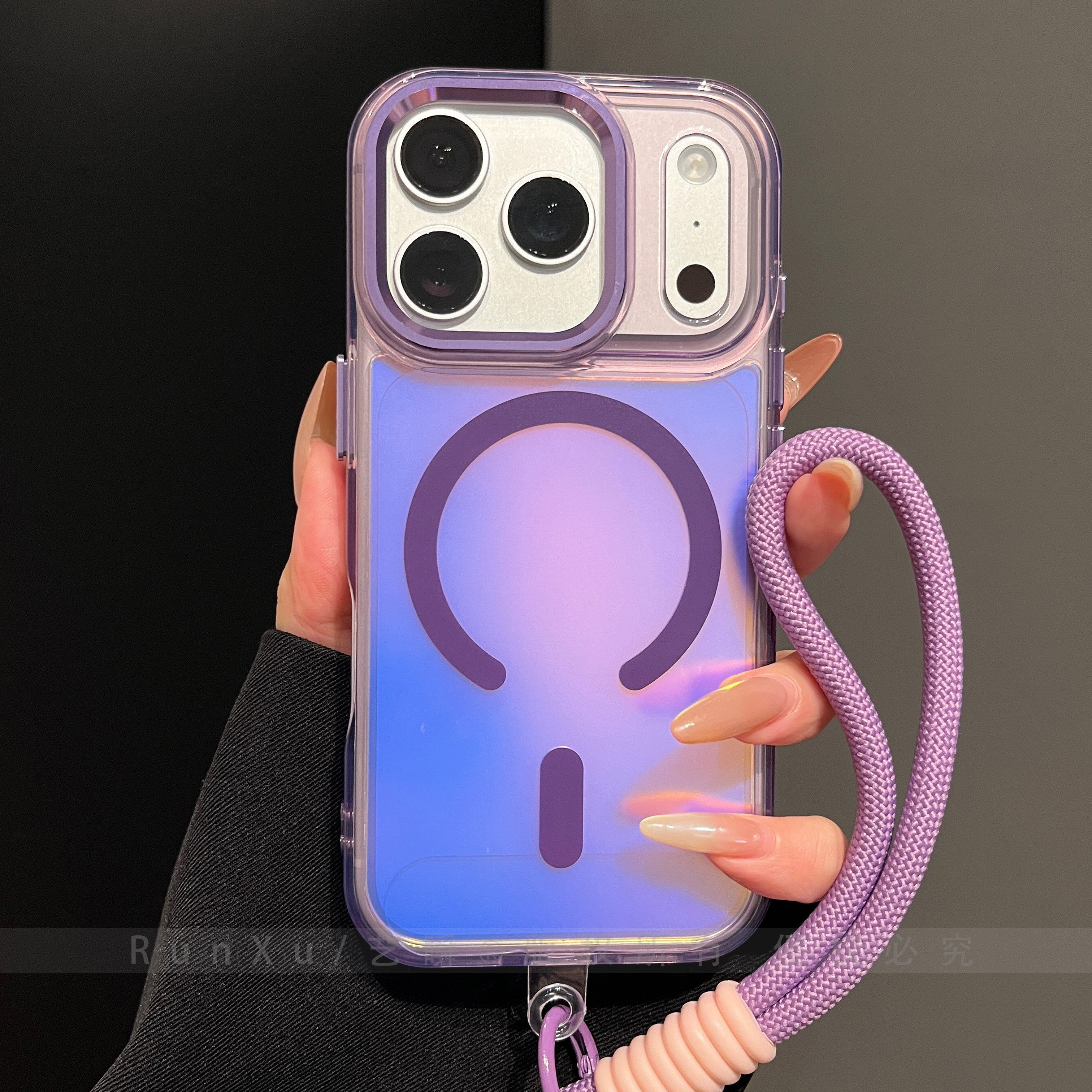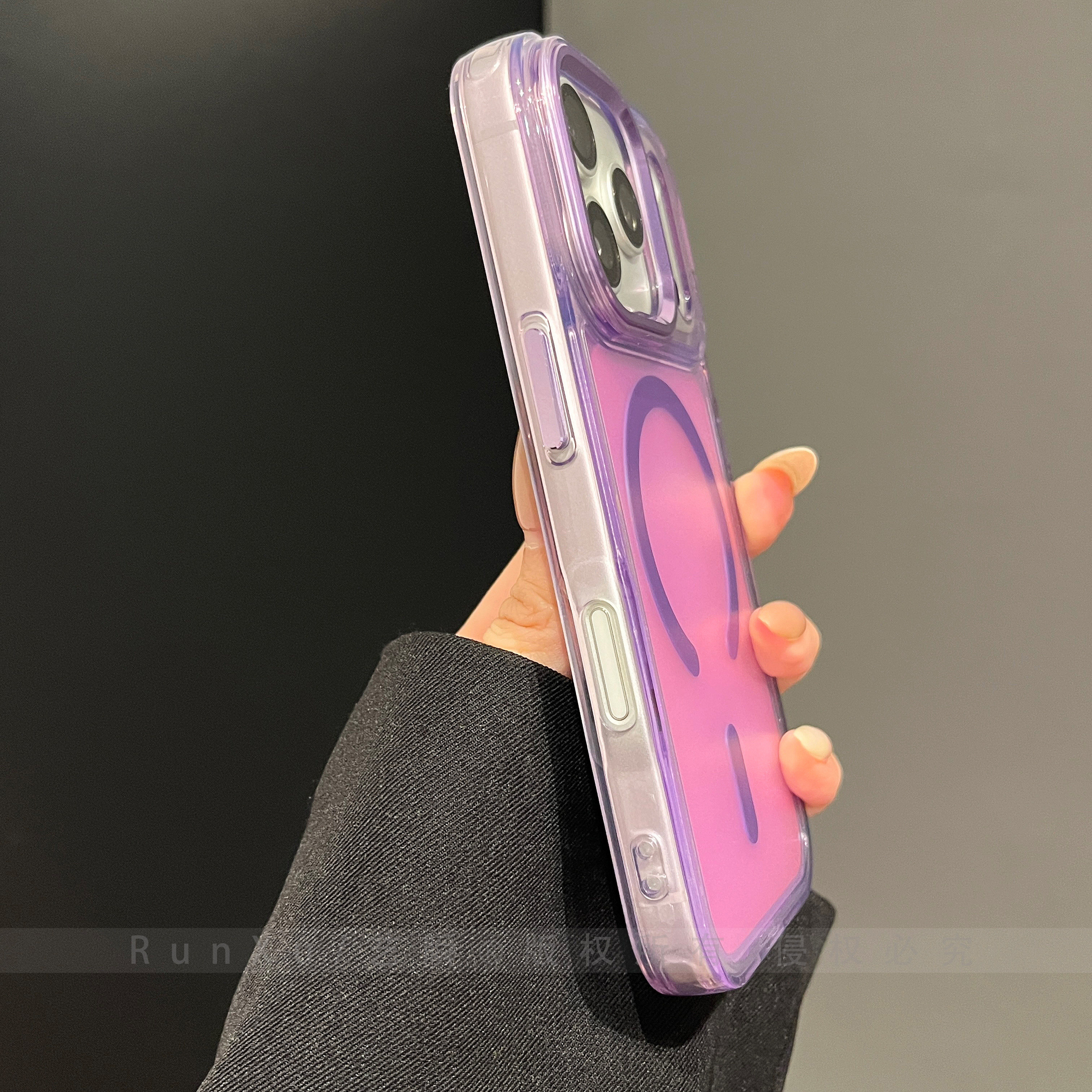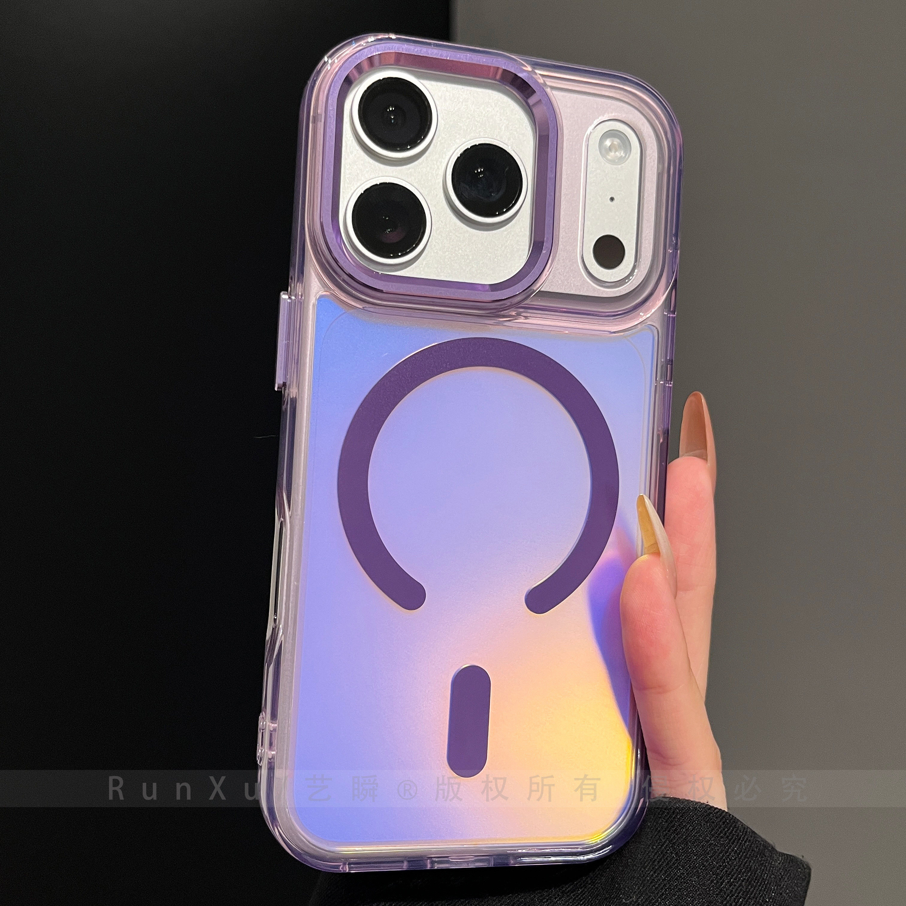 轻奢ins镭射渐变幻影紫适用苹果17ProMax磁吸pro手机壳iphone16全包15pro高级感ip14情侣款13防摔11/12保护套