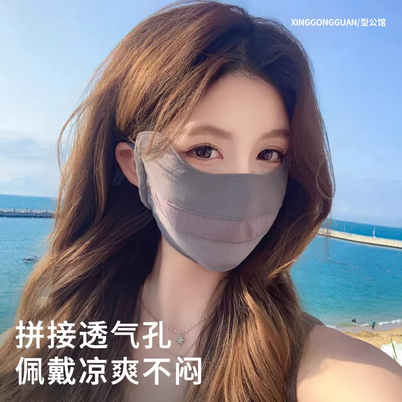 防晒口罩女透气薄款高颜值防紫外线护眼角全脸夏天冰丝遮阳面罩