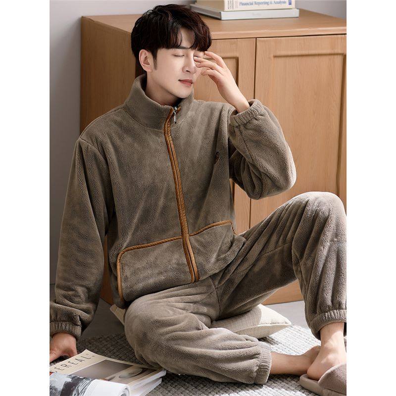 睡衣男冬季珊瑚绒加厚加绒男士秋冬法兰绒男款大码冬款家居服居家
