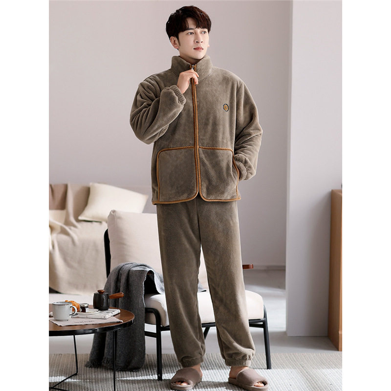 新款珊瑚绒睡衣男士秋冬款加厚套装加绒法兰绒男款冬季家居服大码