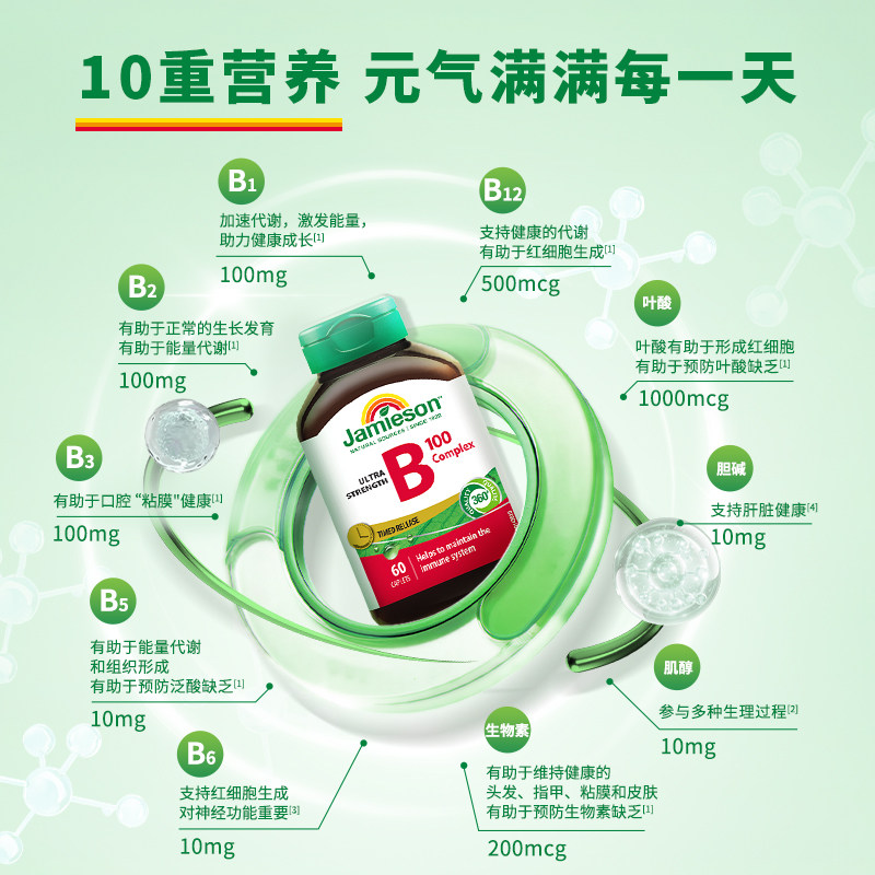 【董璇推荐】Jamieson健美生维生素b复合b100b族b12缓释片生物素