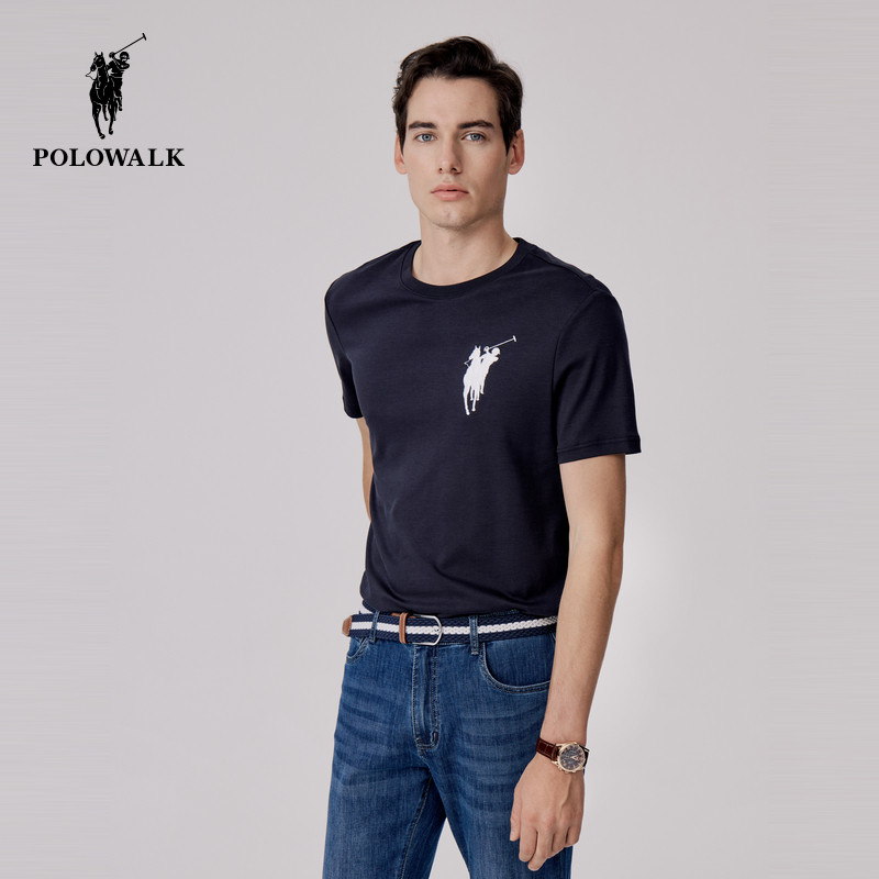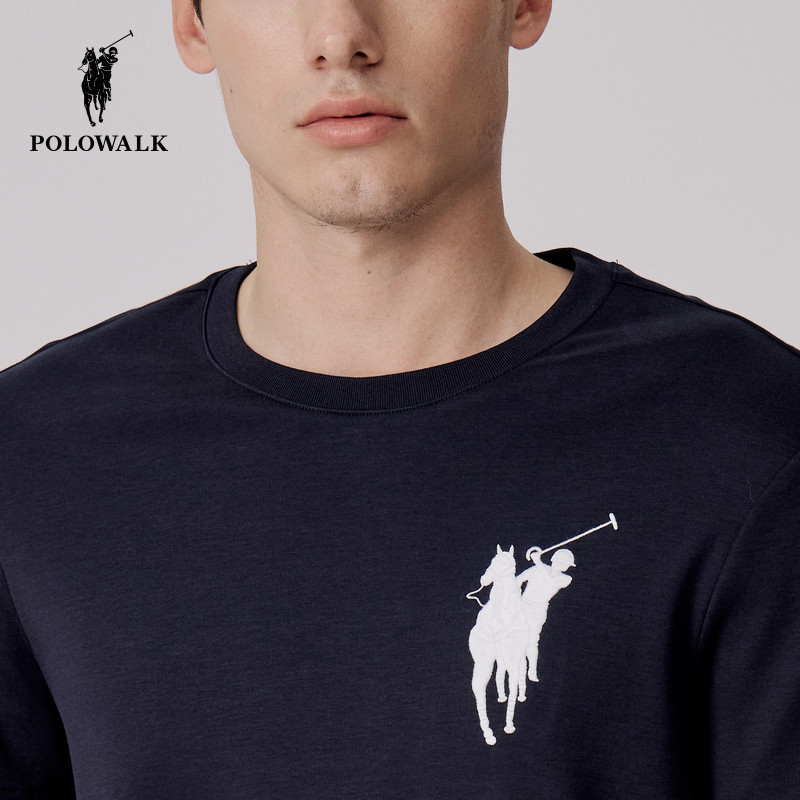 POLOWALK短袖t恤高级感男装夏季新款显瘦休闲气质清凉圆领刺绣