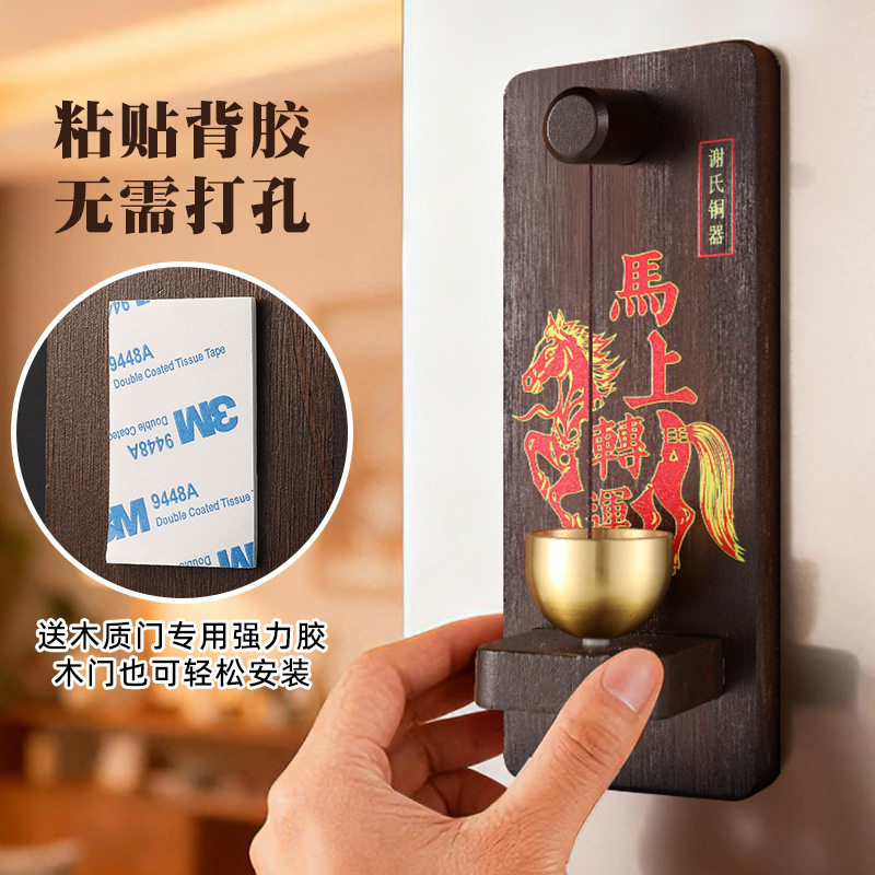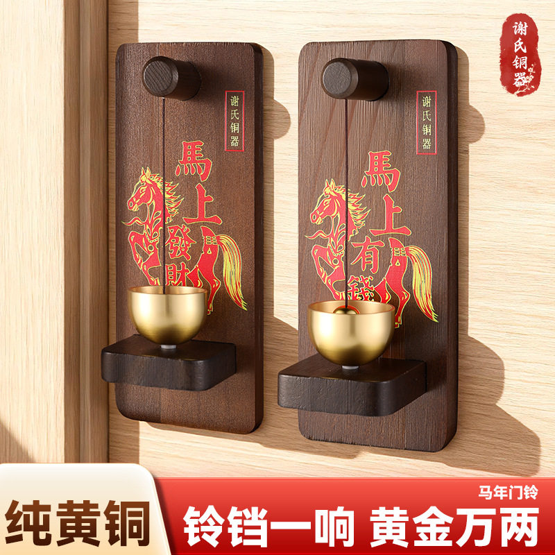 2026马年门铃黄铜实木进门铃铛玄关风铃挂件入户门铃装饰摆件家居