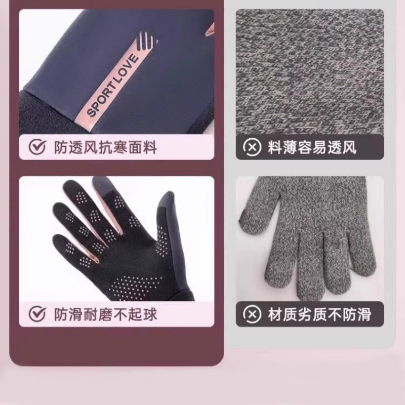 冬季电动车手套加厚加绒保暖麂皮绒骑行防寒触屏男女士防风手套