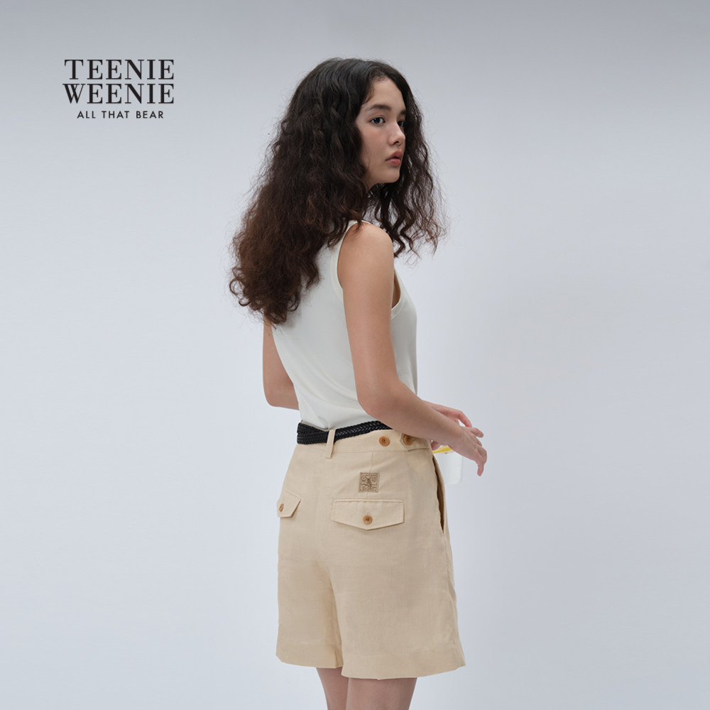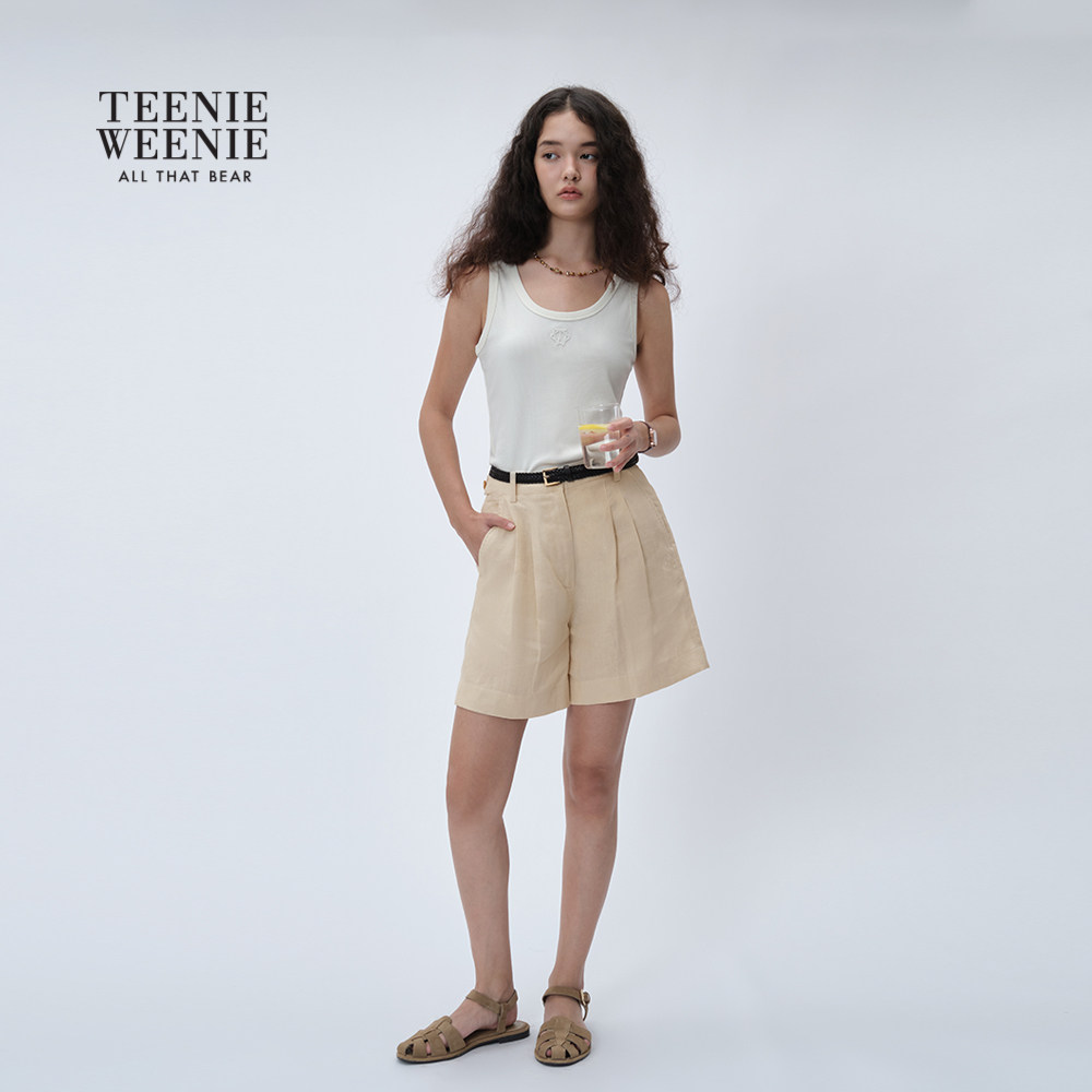 TeenieWeenie小熊女装2025秋季新款白色露肩吊带背心T恤内搭上衣