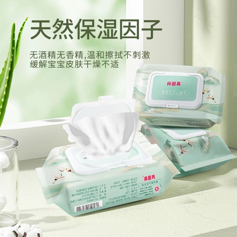 贝因美手口湿巾加厚带盖手口专用擦屁股80抽大包家庭实惠装湿纸巾