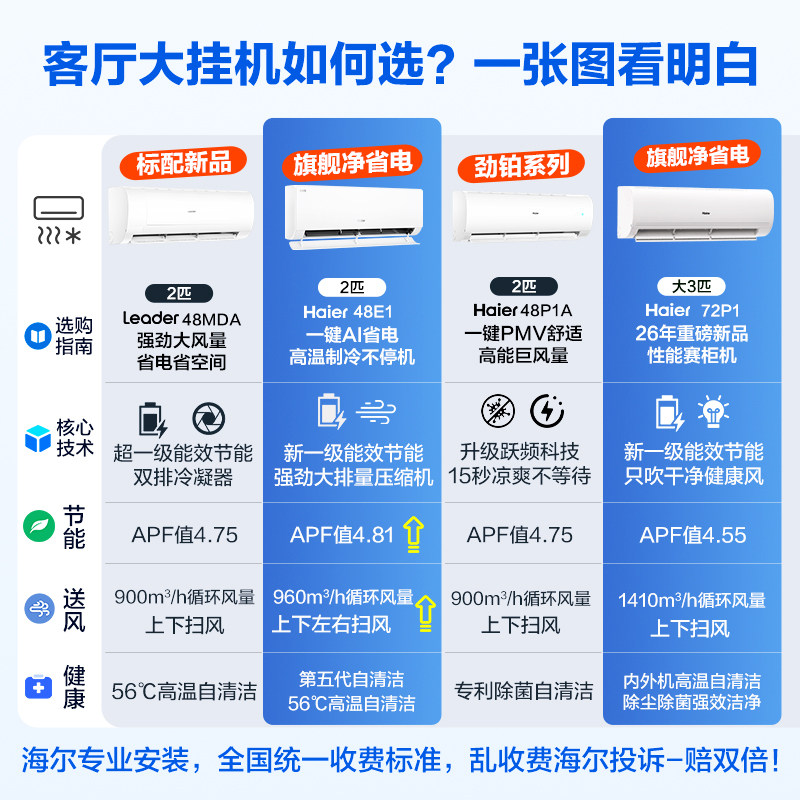 国补省15%]海尔空调2匹3匹大挂机家用一级能效变频冷暖统帅旗舰店