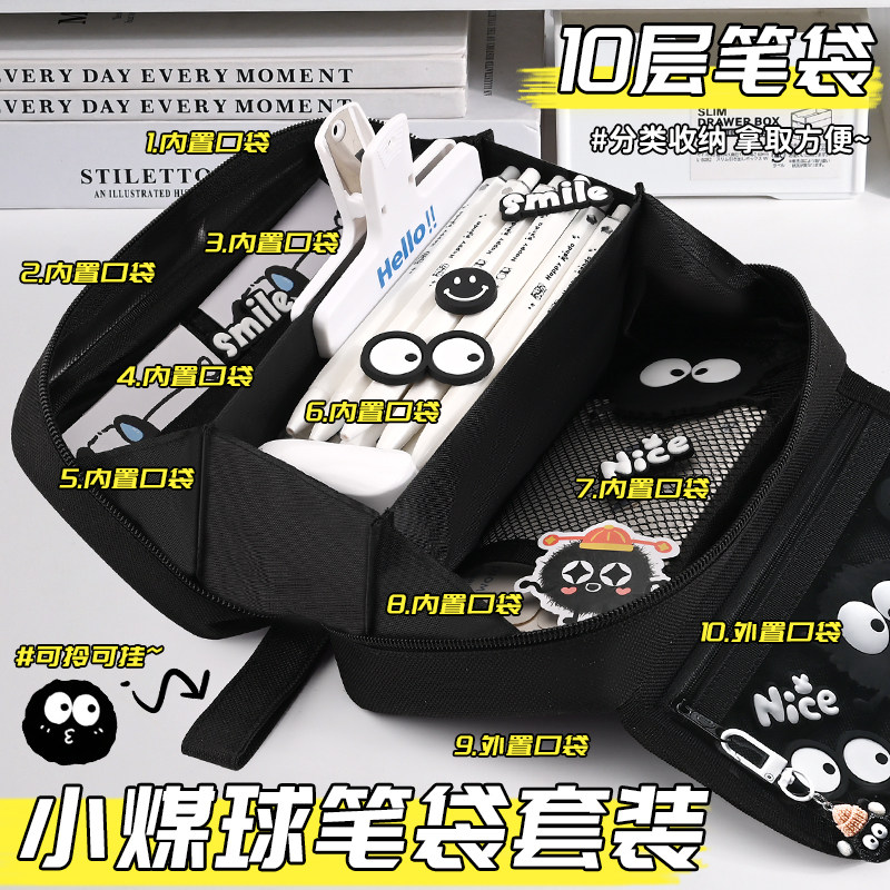 小煤球笔袋男孩2026新款超火文具盒男生款大容量高颜值ins风小学生实用型多功能文具袋幼儿园儿童简约铅笔盒