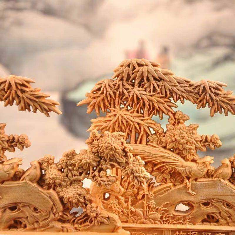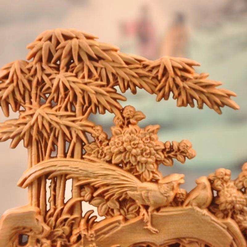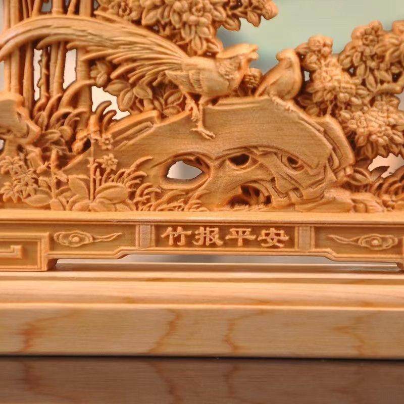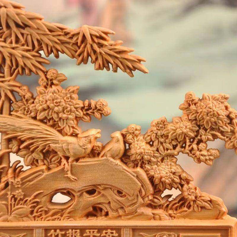 太行崖柏木雕竹报平安摆件家居客厅玄关装饰实心根雕工艺品风化料