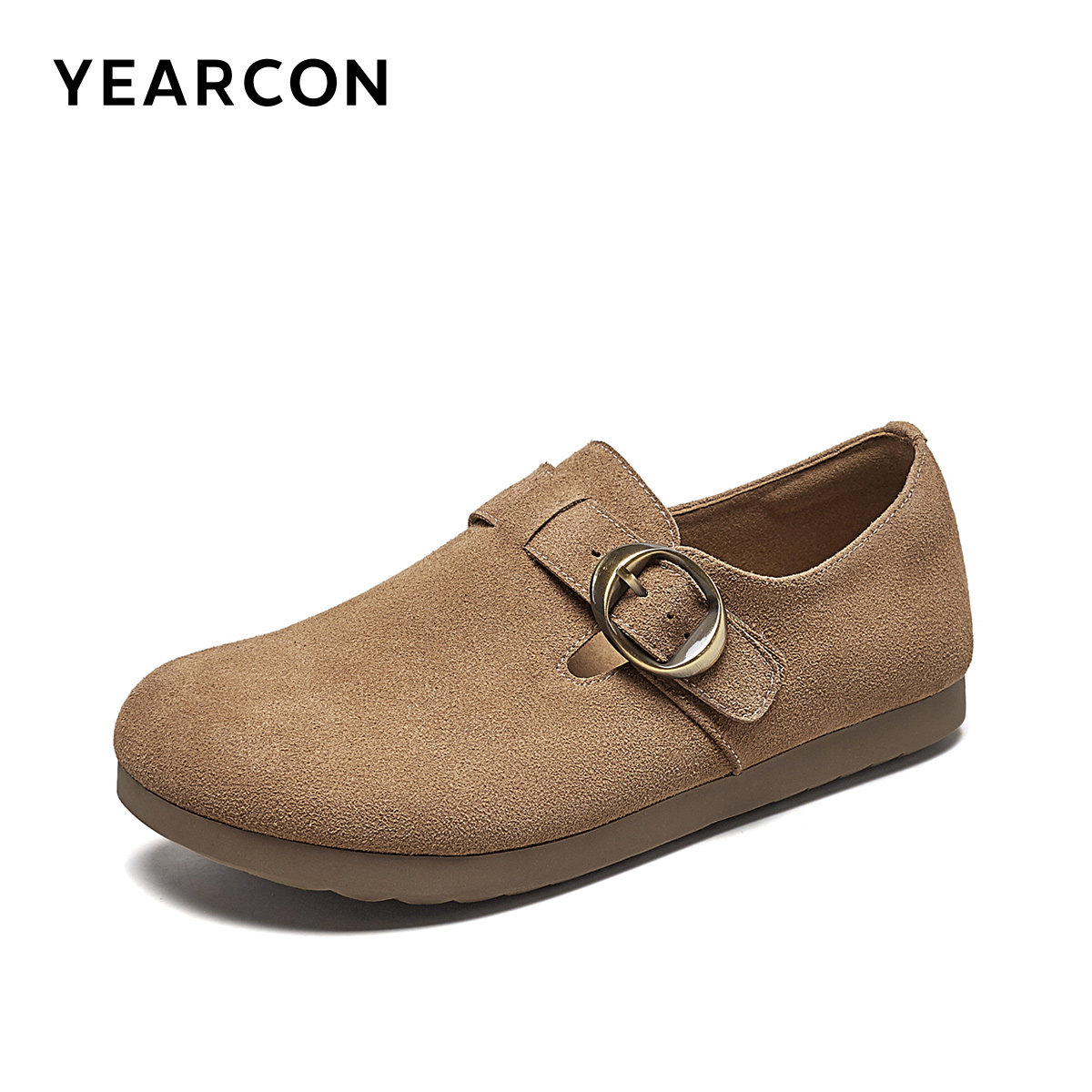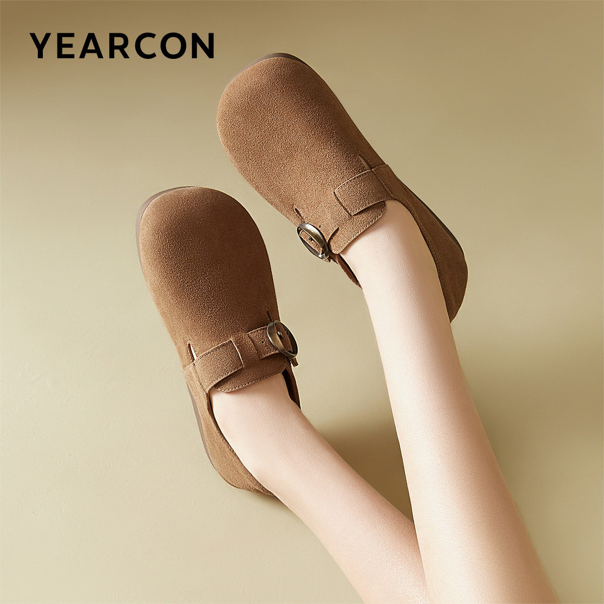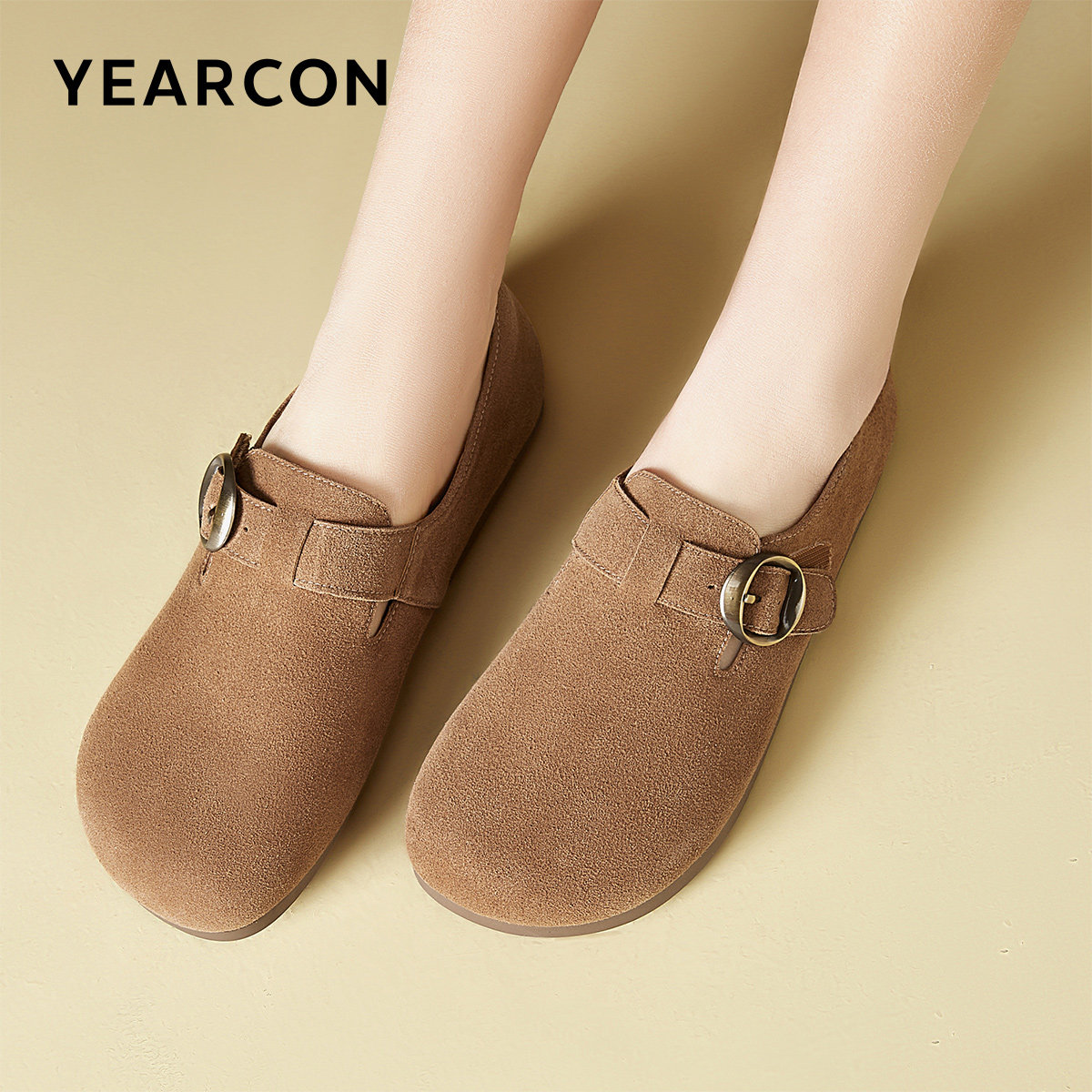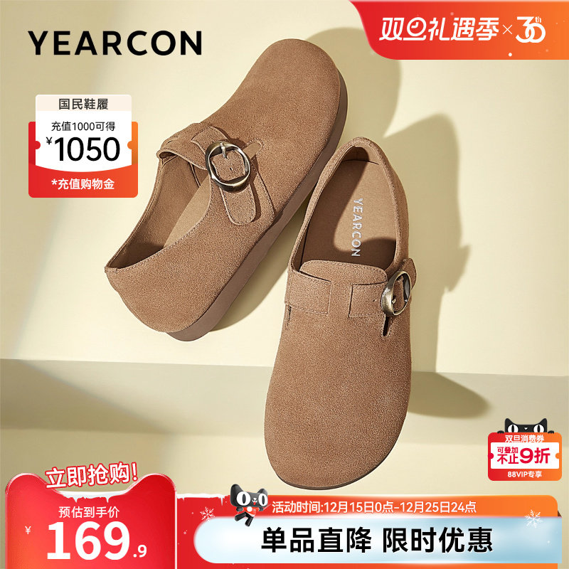 意尔康女鞋2025秋季一脚蹬全包勃肯鞋复古软底乐福鞋平底包头单鞋
