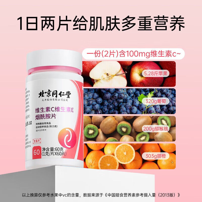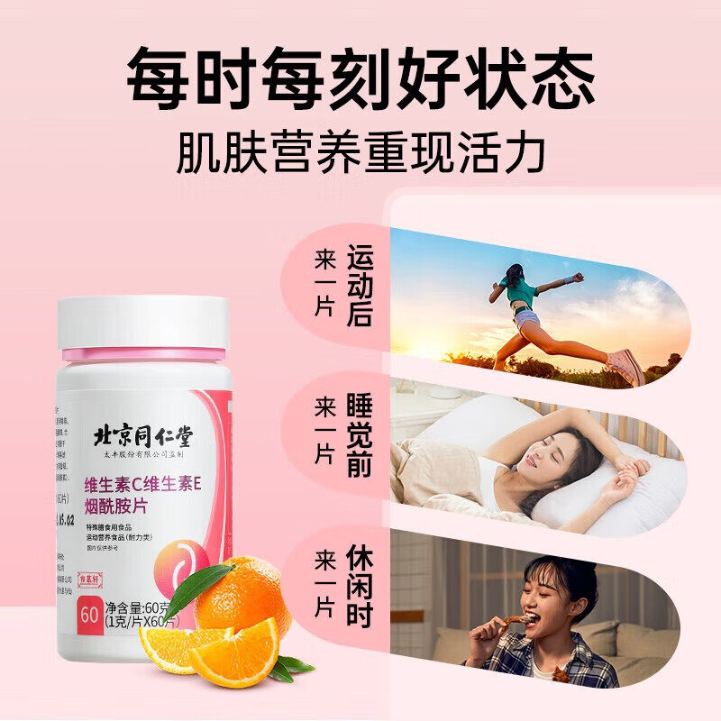 北京同仁堂内廷上用维生素c烟酰胺vc咀嚼片男女士专用维e美白正品