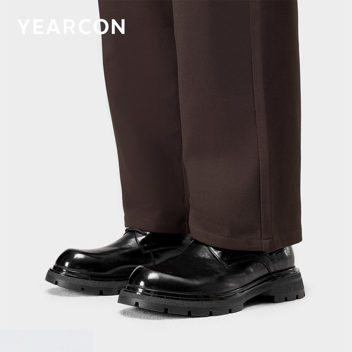 【小牛皮】青润chioryn袋鼠鞋男黑色真皮增高厚底休闲通勤风皮鞋