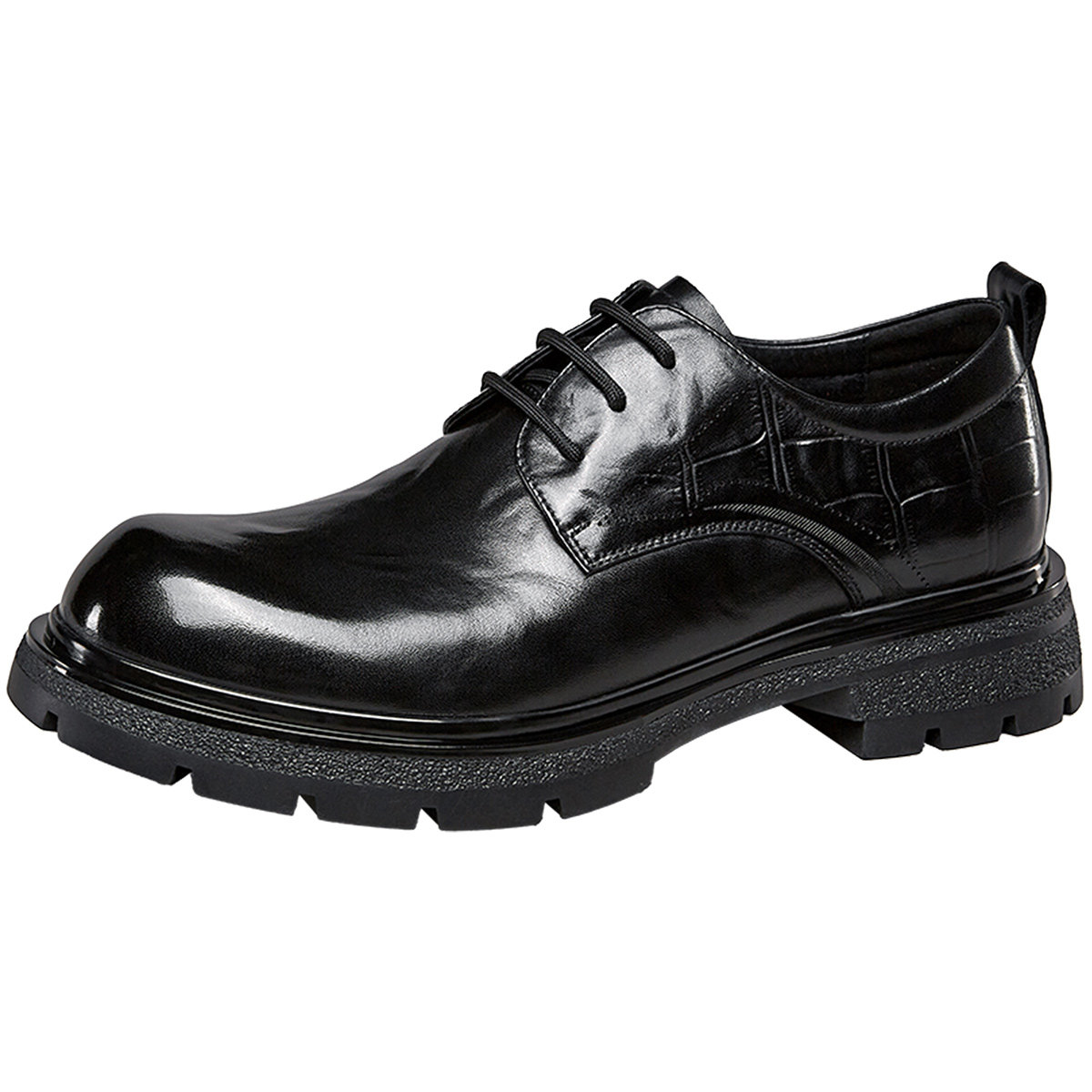 皮鞋男款高级感厚底增高英伦通勤大头德比鞋男冬季新款低帮马丁靴