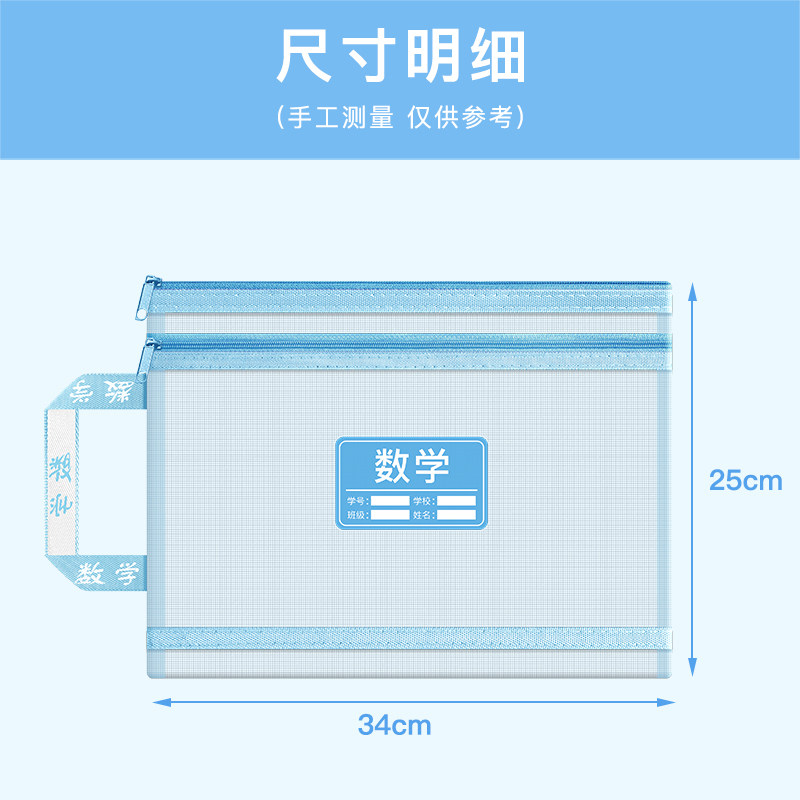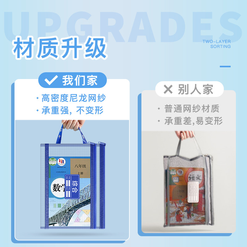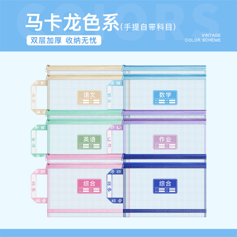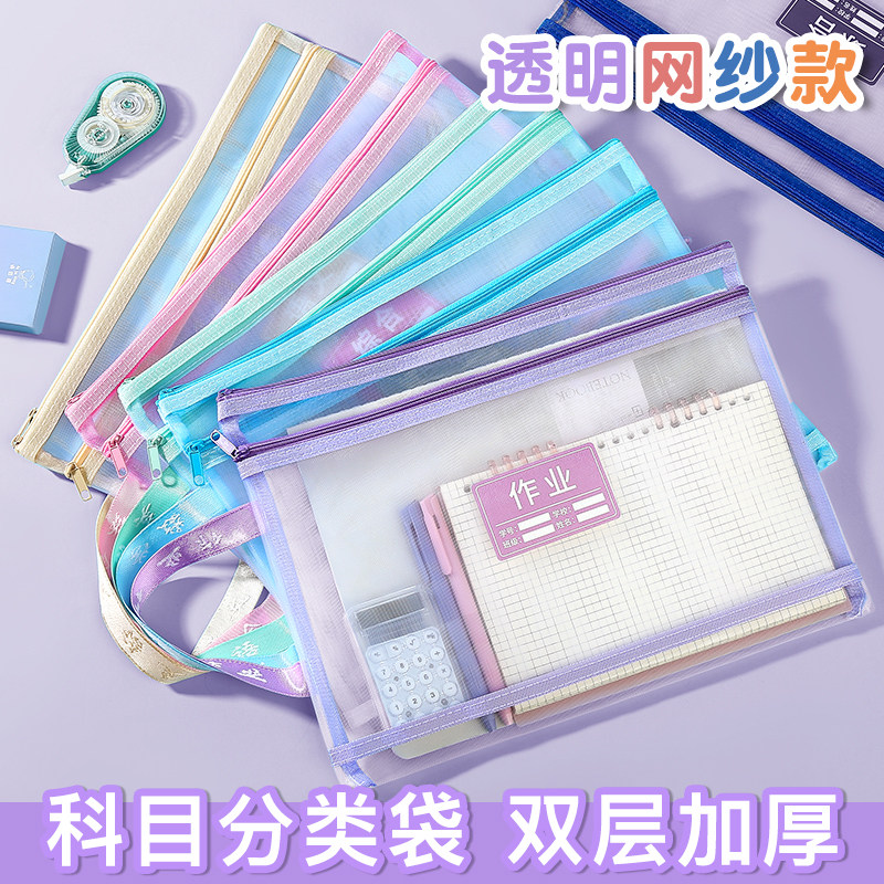 A4学科科目分类文件袋网纱试卷收纳袋书本课本分科资料袋学习袋作业补习袋拉链式双层大容量收纳高中生结实